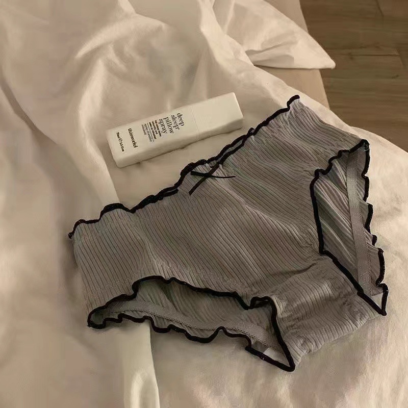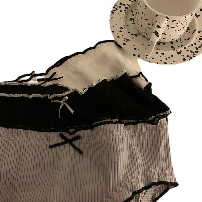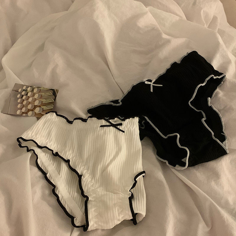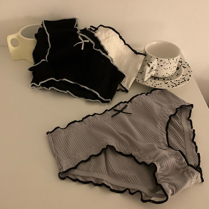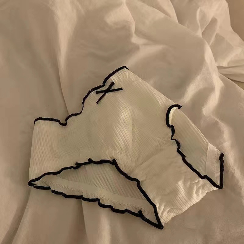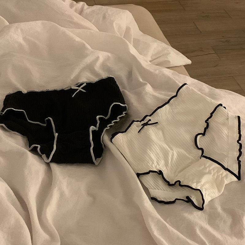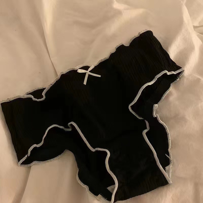 夏季日系简约纯棉内裤女中低腰柔软舒适少女蝴蝶结纯色透气三角裤