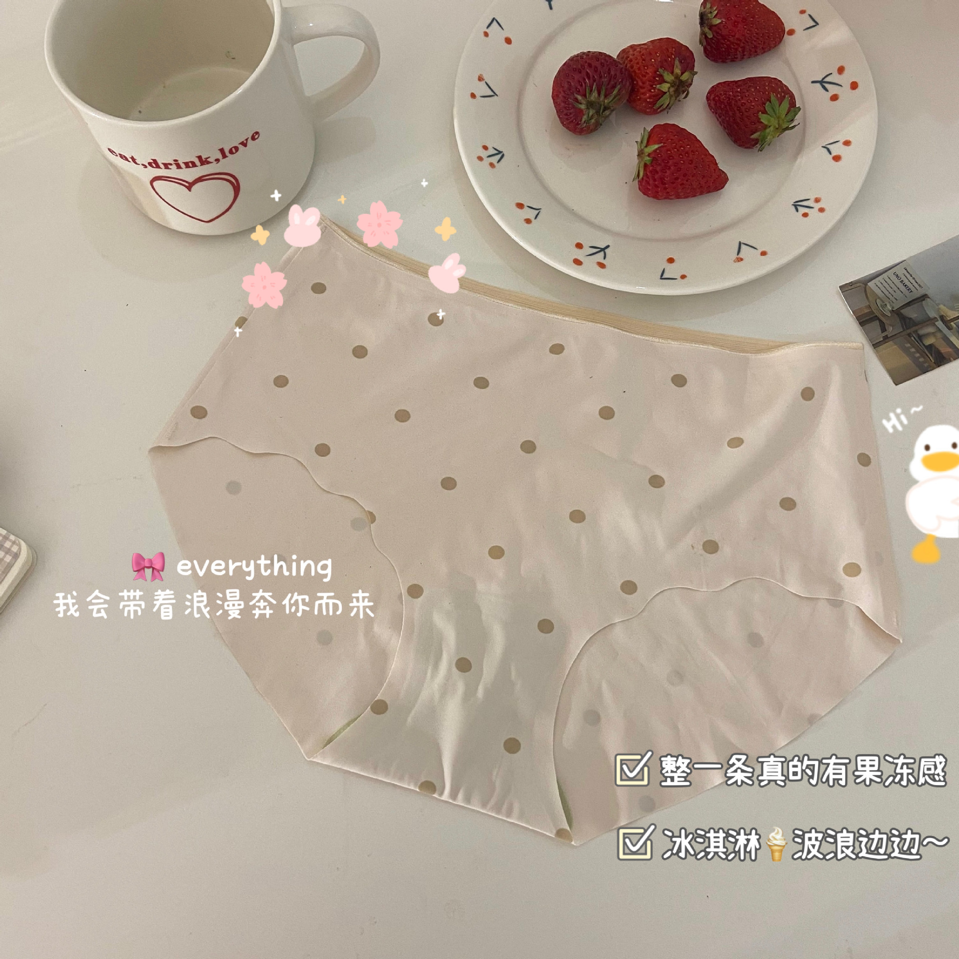 温柔奶油系~啵啵珍珠奶茶印花冰丝无痕舒适贴身纯棉裆女士三内裤
