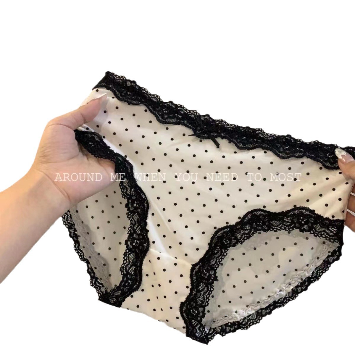 日系可爱清新性感简约蕾丝小圆点冰丝学生透气舒适少女三角裤内裤