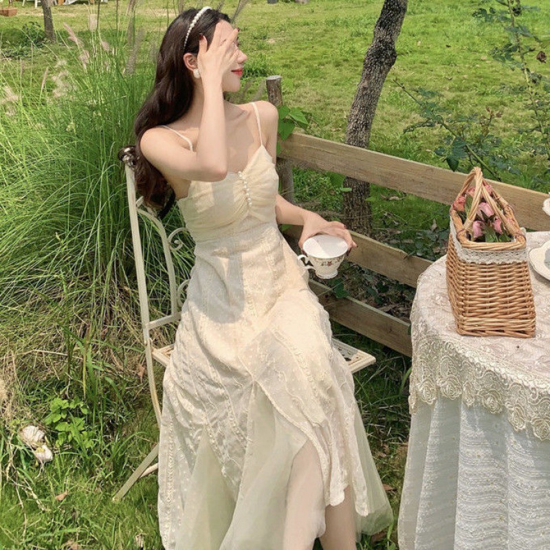 甜欲风桔梗初恋裙茶歇法式吊带长裙设计感显瘦收腰超仙森系连衣裙