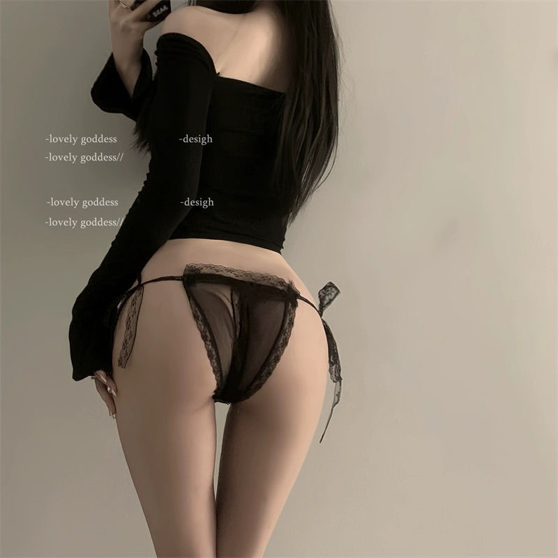 朦胧感*纯欲性感系带蕾丝低腰蝴蝶结开裆诱惑内裤丁字裤女