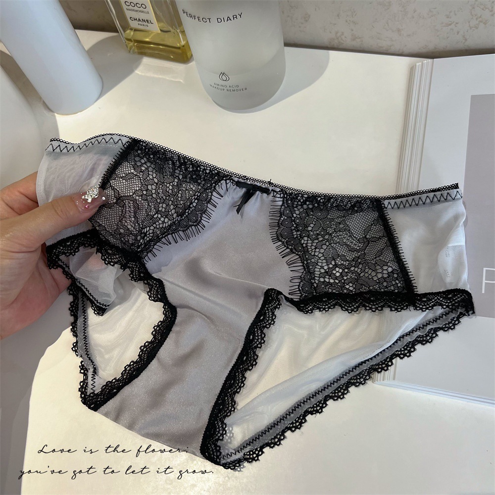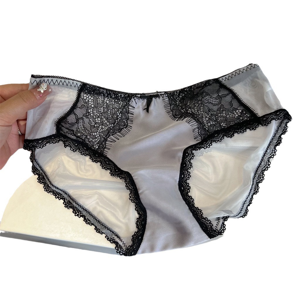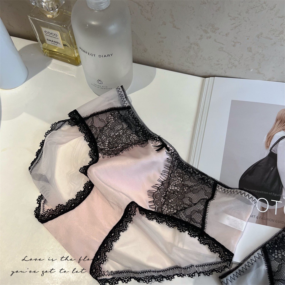 复古高奢蕾丝内裤女法式睫毛拼接缎面舒适透气纯棉裆中腰三角裤女