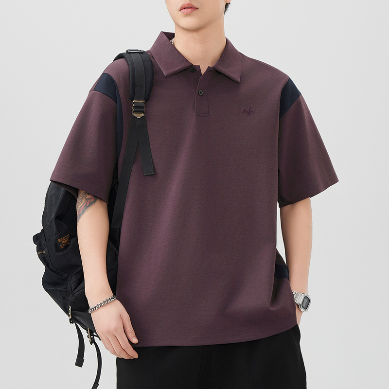 美式Polo衫短袖t恤男潮牌大码夏季2025新款高端复古撞色拼接体恤