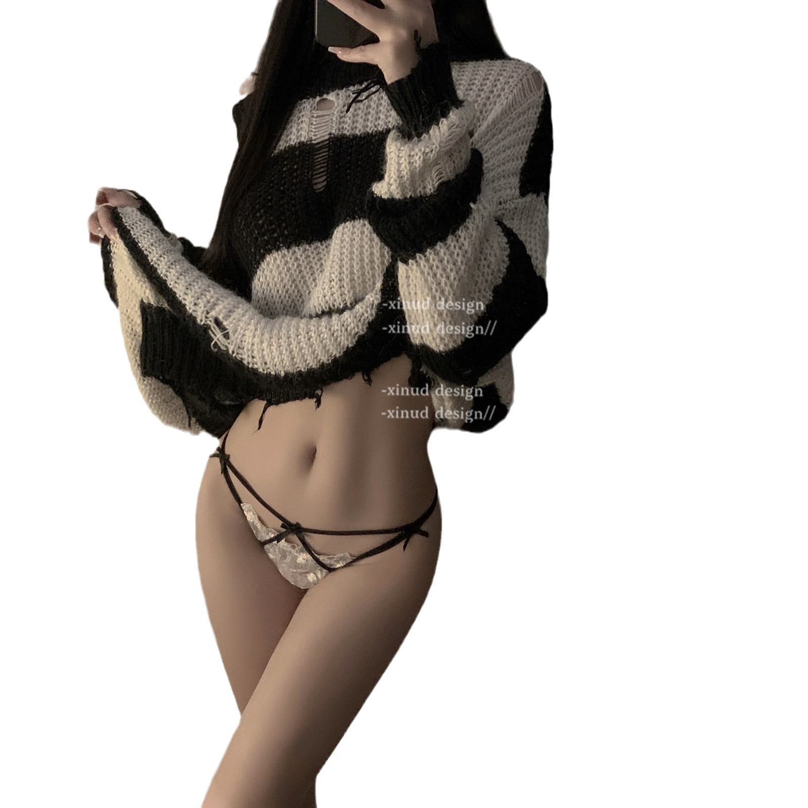 醉梨花*性感蝴蝶结纯欲网纱内裤交叉蕾丝低腰细带少女薄三角内裤