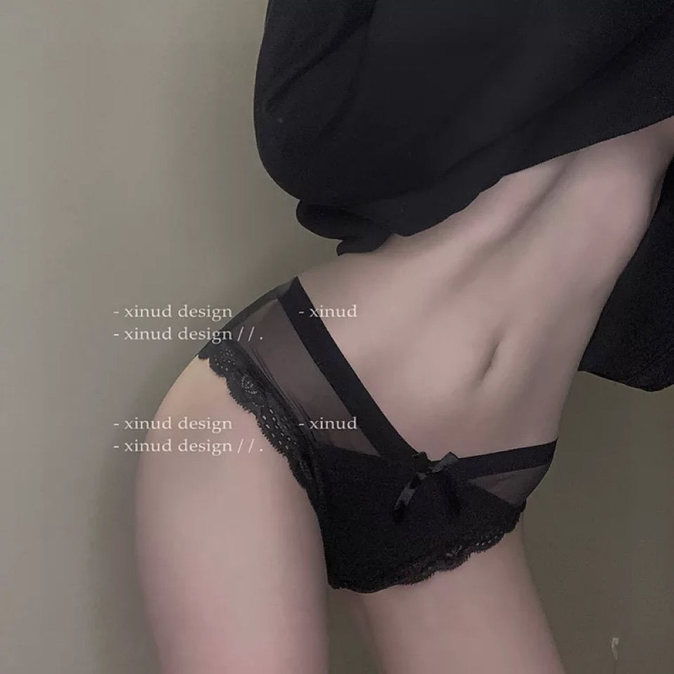 私房少女性感蕾丝白色纯欲透明低腰三角裤诱惑超薄内裤底裤女生