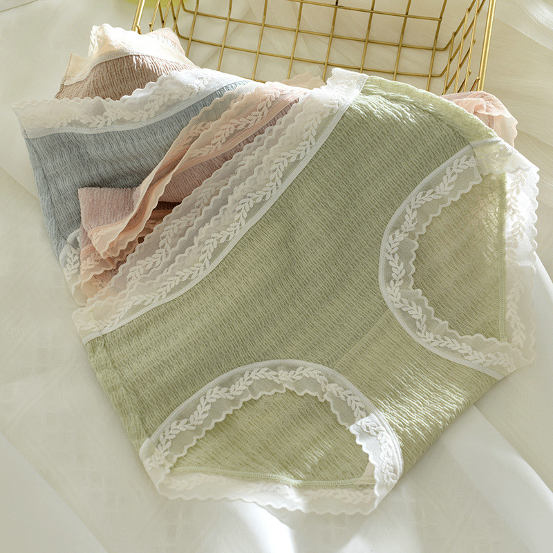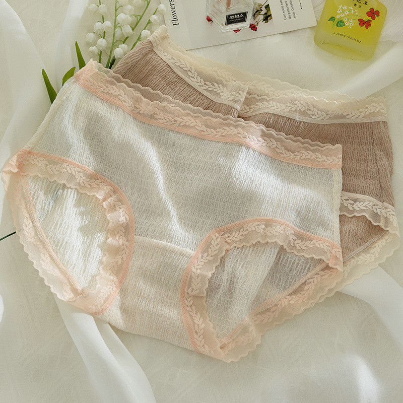 春夏新款蕾丝少女日系性感内裤女透气裆薄款中腰无痕三角裤头