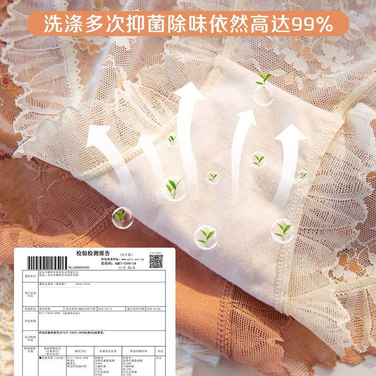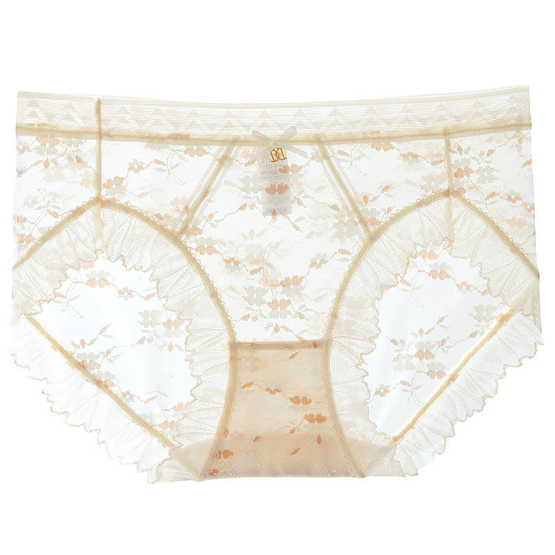 性感蕾丝内裤女士中高腰轻收腹提臀刺绣全棉裆网纱三角裤密采