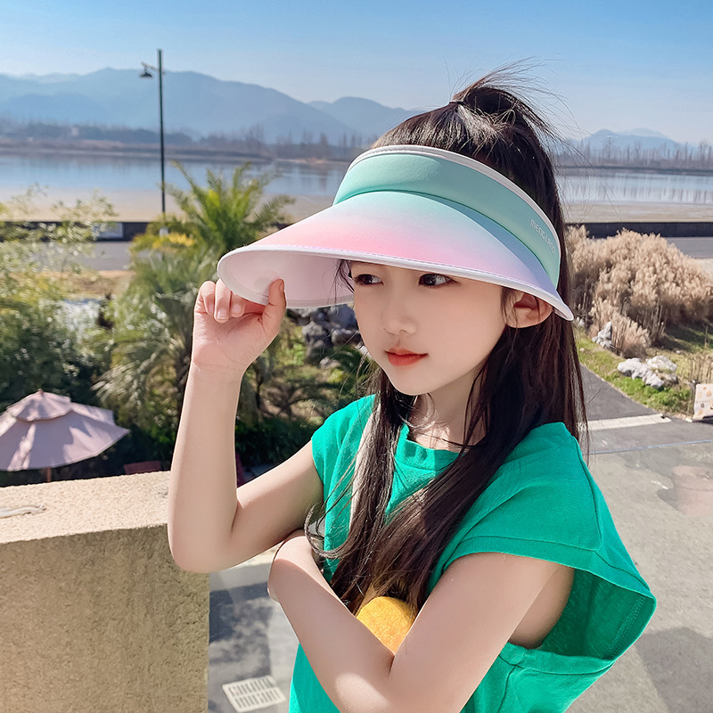 夏季渐变撞色儿童防晒大帽檐空顶帽户外遮脸折叠防紫外线遮阳帽