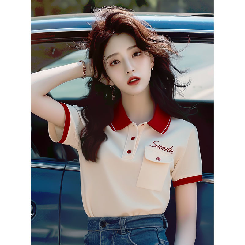 今年流行漂亮设计感独特漂亮白色polo领上衣女新款爆款夏季