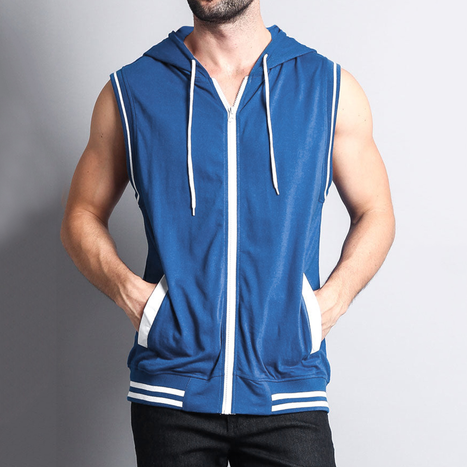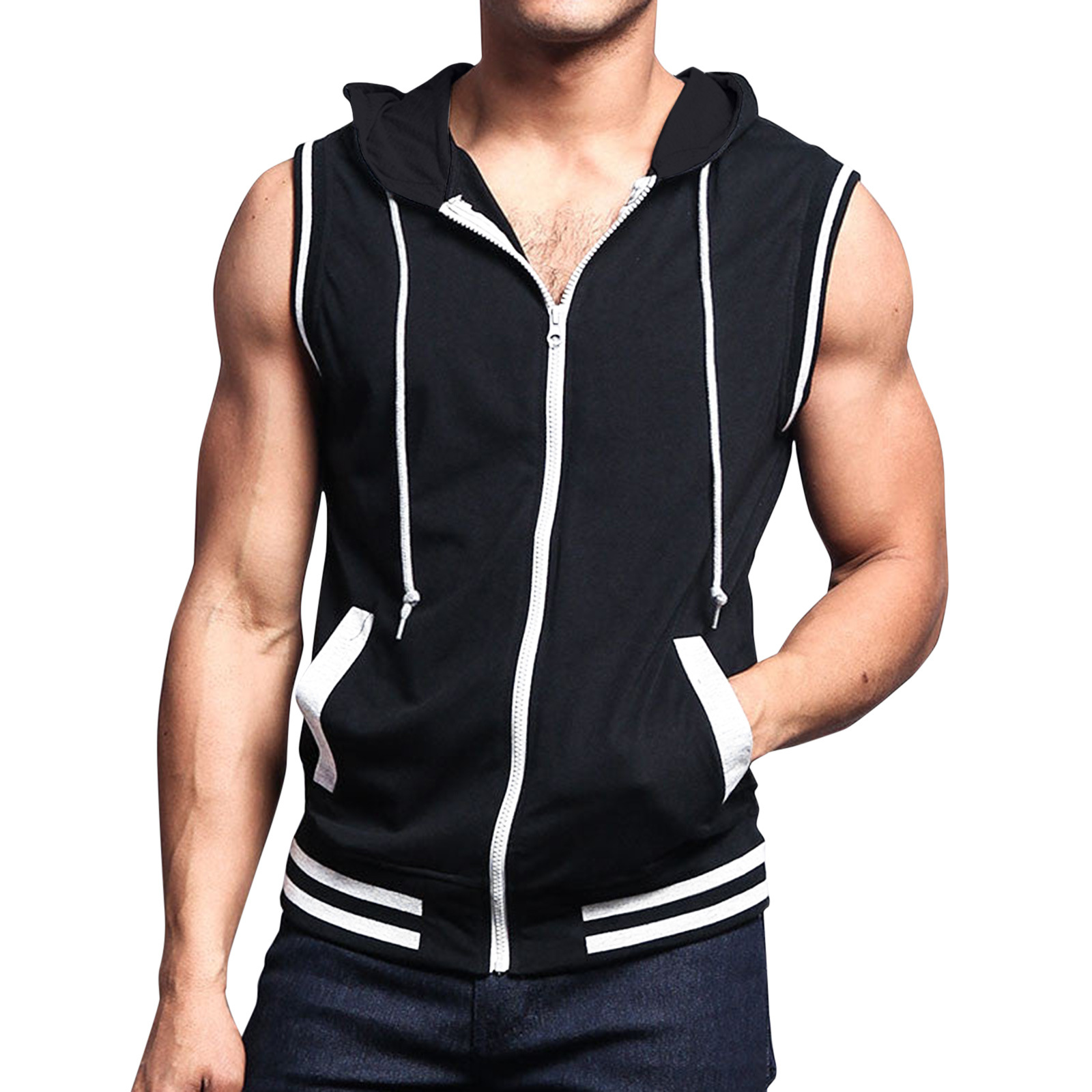跨境 欧美夏季新款欧码男士背心健身拉链无袖T恤修身连帽背心