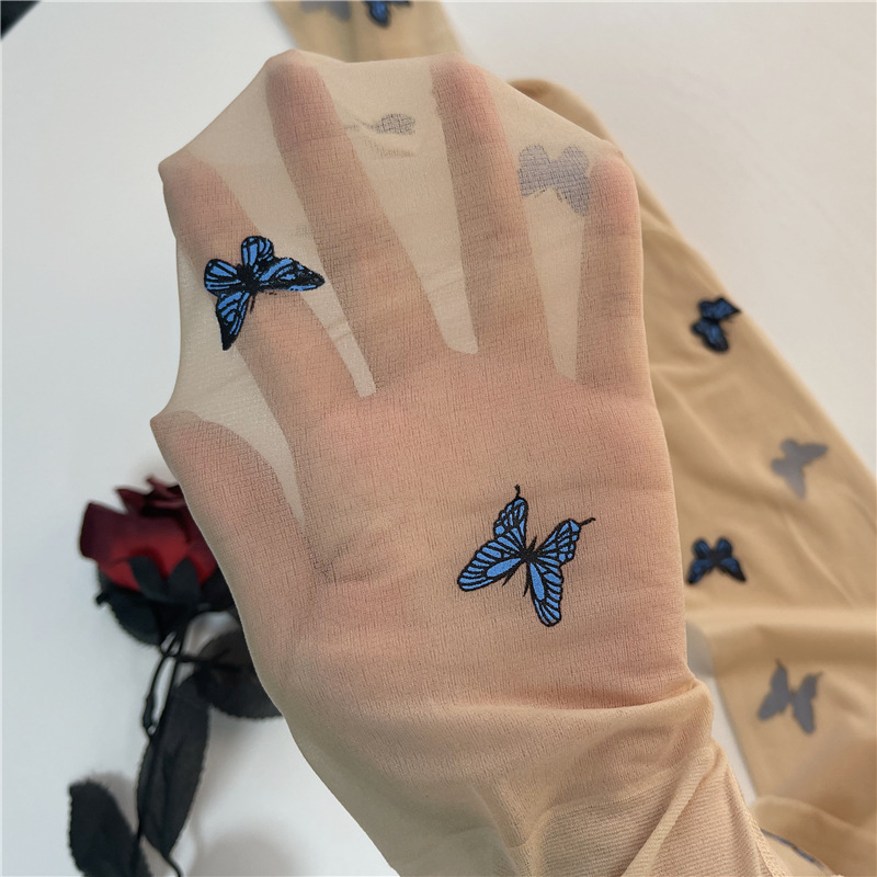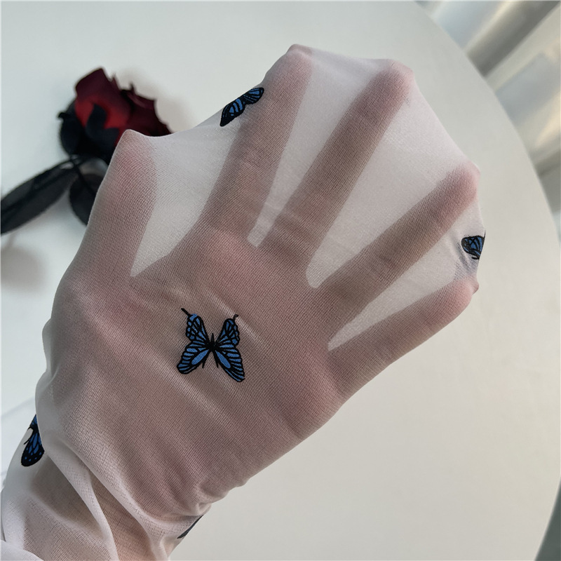 任意剪蓝色蝴蝶结丝袜女纯欲风白丝袜性感印花防勾丝连裤袜子