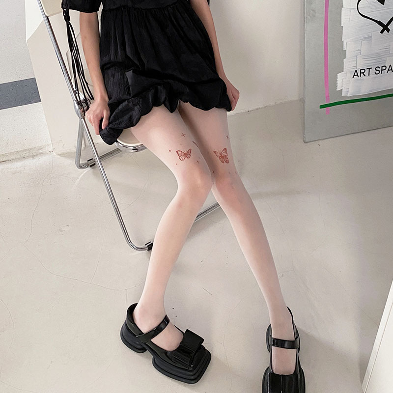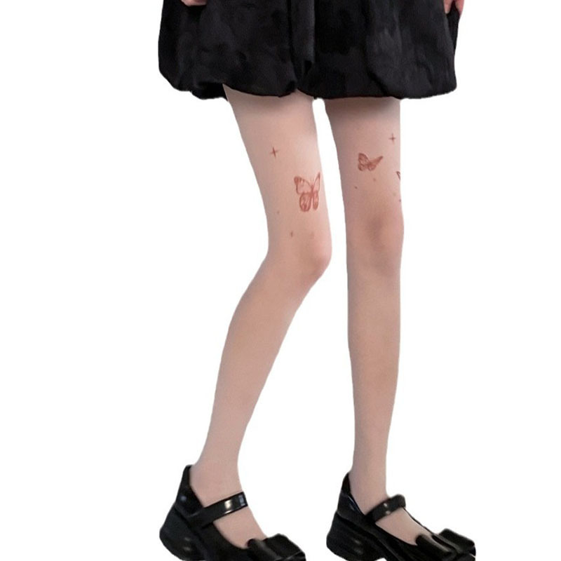 新款薄款丝袜性感辣妹美肤打底袜刺青印花蝴蝶结肤色jk打底连裤袜