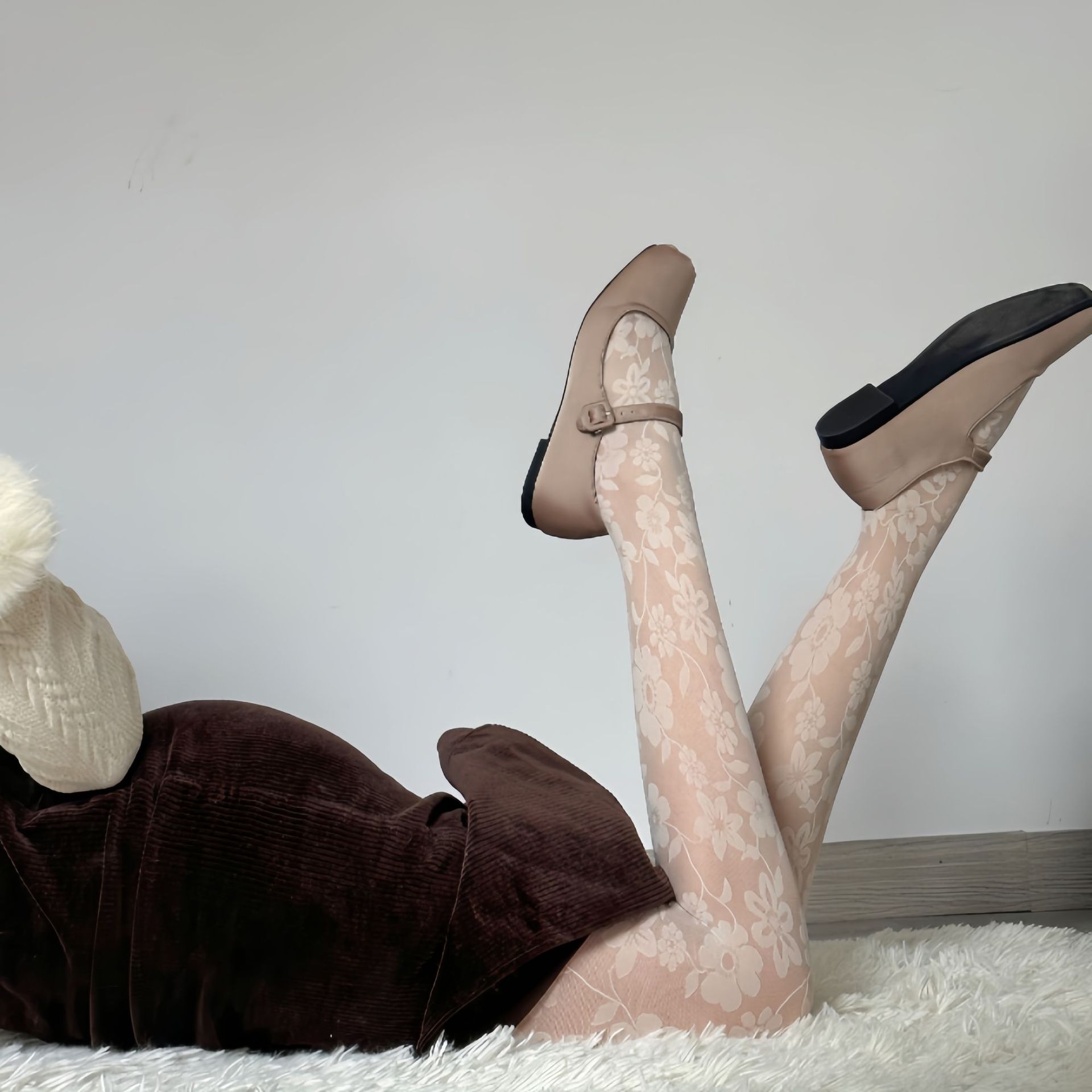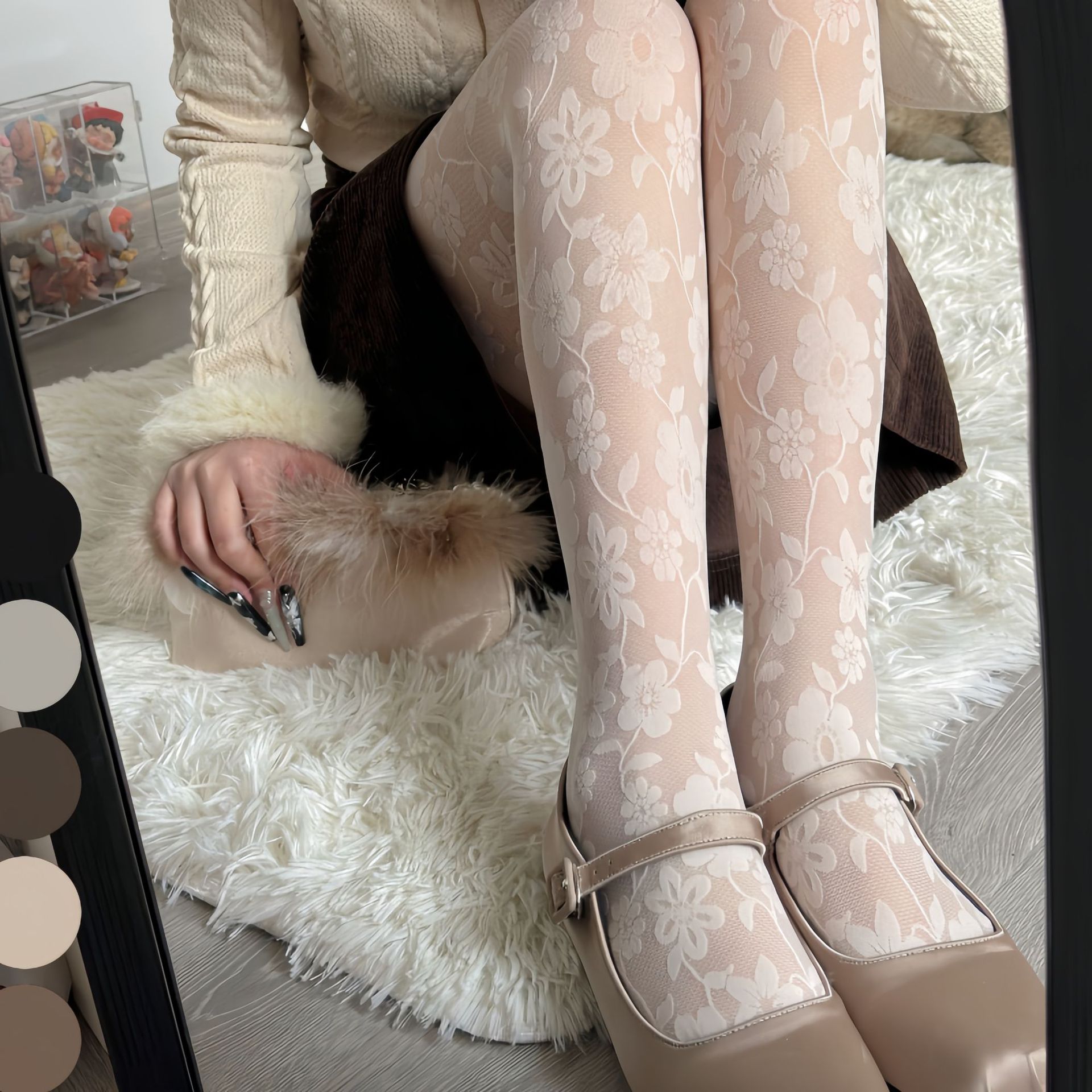 法式优雅复古玫瑰花暗纹提花纯欲白色丝袜透肉显瘦美腿打底连裤袜