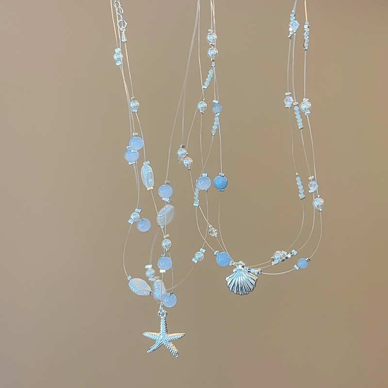 海岛漫旅~海星贝壳珍珠项链女海边度假叠戴锁骨链气质冷淡风颈链