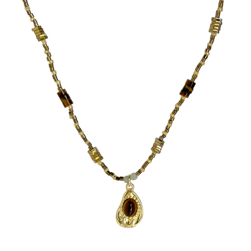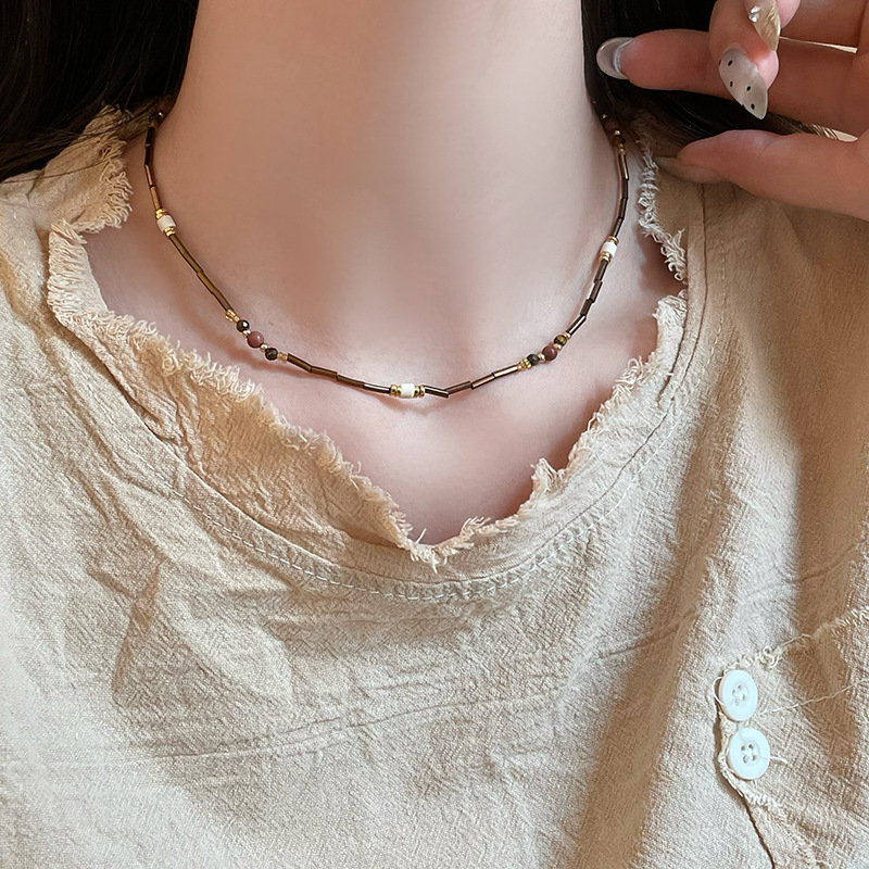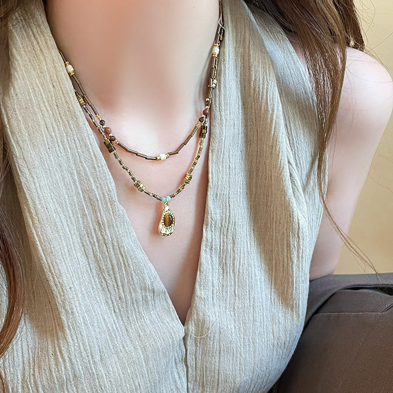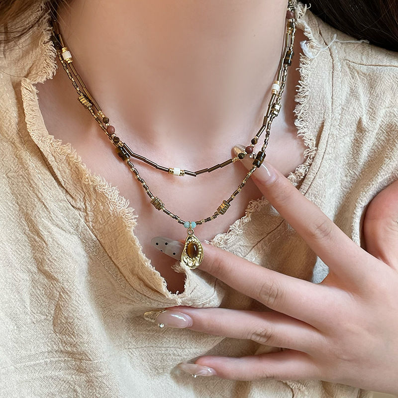 美式虎眼石串珠吊坠项链女复古高级感锁骨链新款甜酷颈链配饰