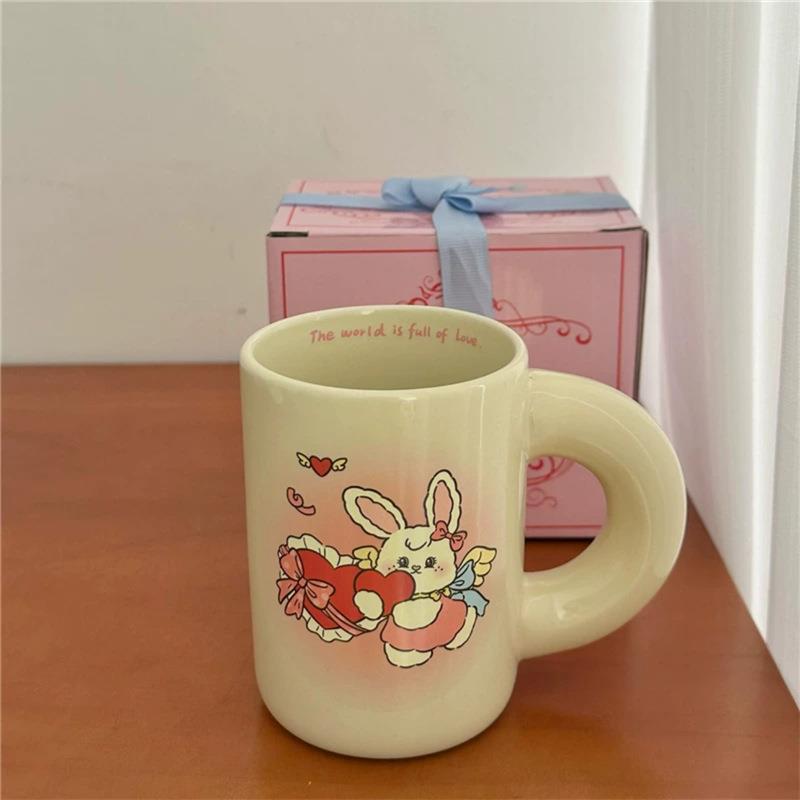 原创ins新款奶油色蛋糕狗爱心兔陶瓷马克杯礼盒装情侣水杯咖啡杯