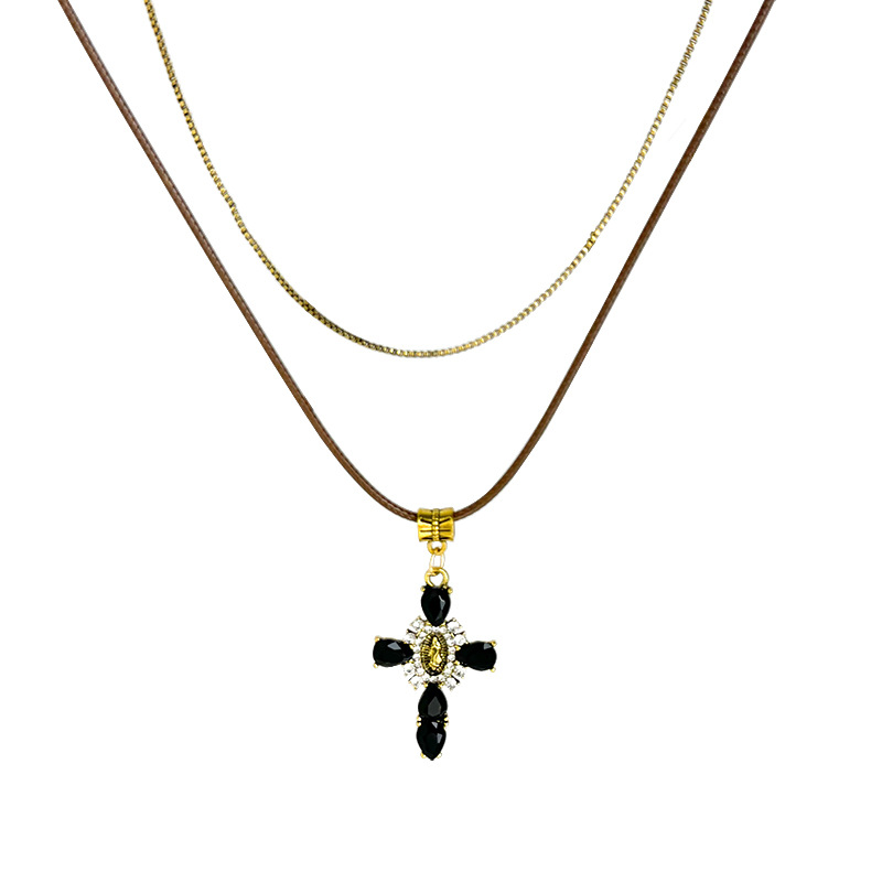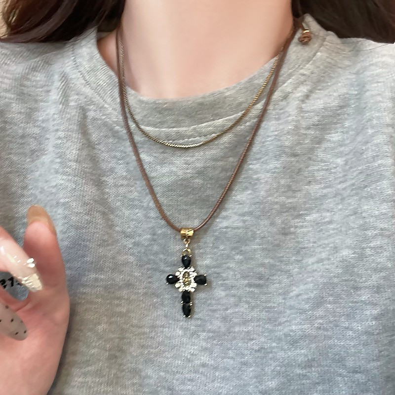 双层编织十字架叠戴项链女个性独特设计感锁骨链甜酷辣妹复古配饰