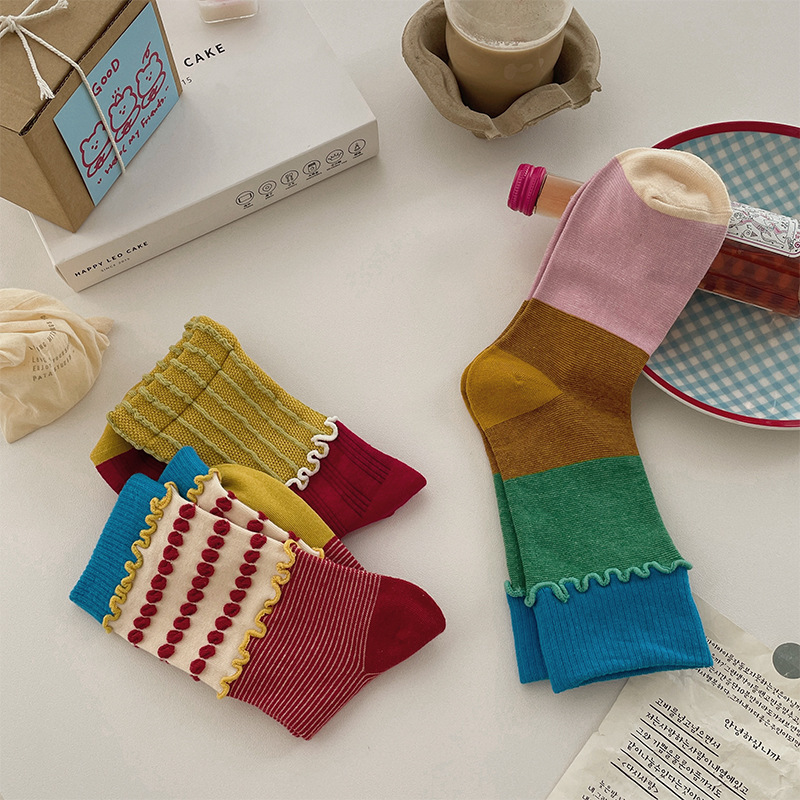 趣味硬糖系列袜子男女春夏中筒袜ins潮四季男女袜春秋天木耳花边