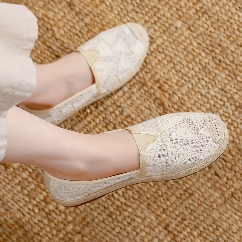 渔夫鞋女2025年夏季新款一脚蹬懒人鞋女透气蕾丝网布