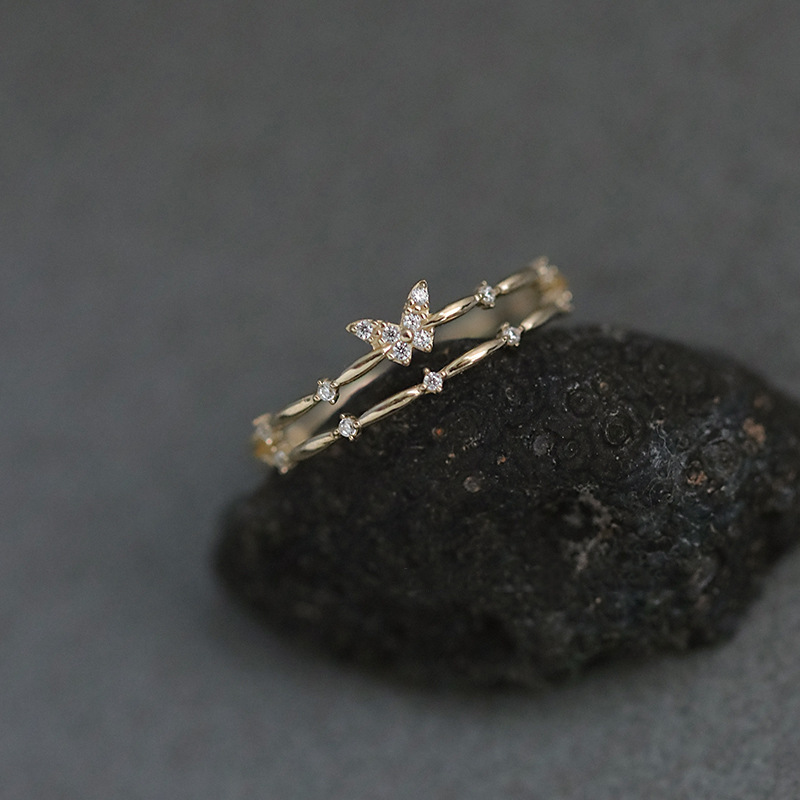 双层蝴蝶戒指女轻奢小众ins冷淡风精致锆石韩版开口指环新款