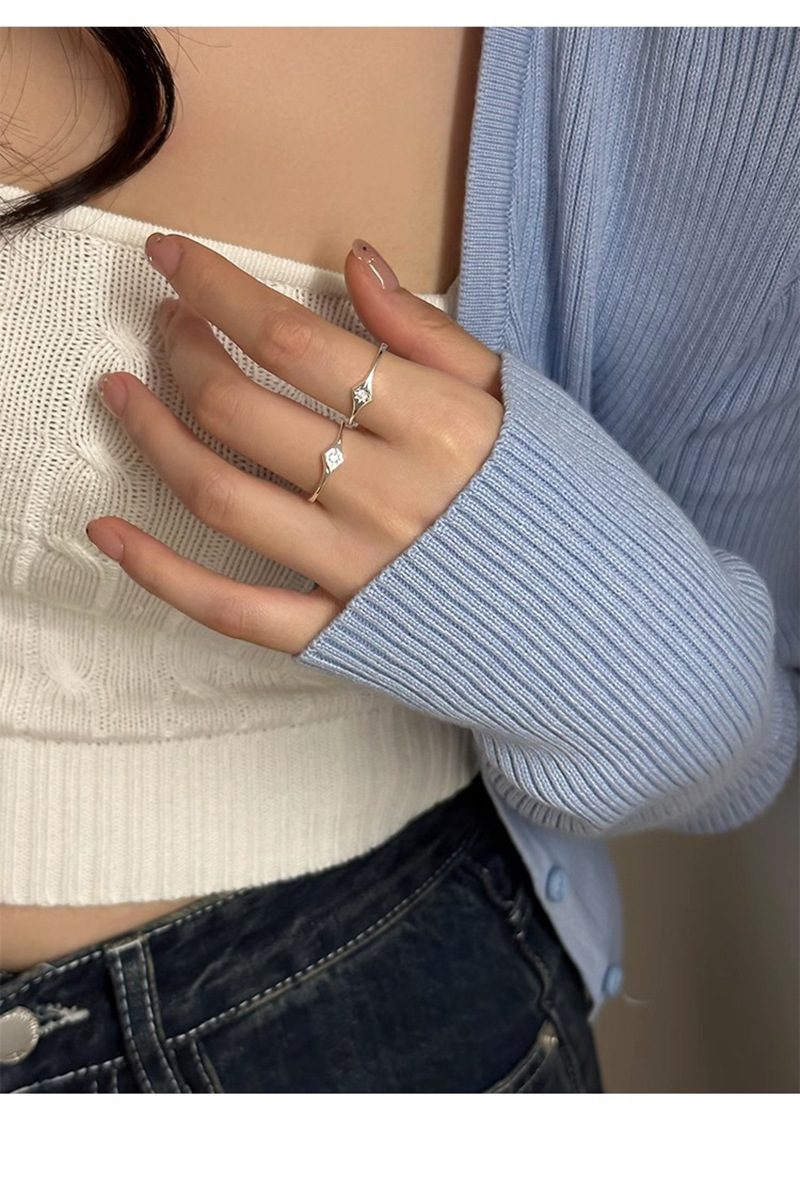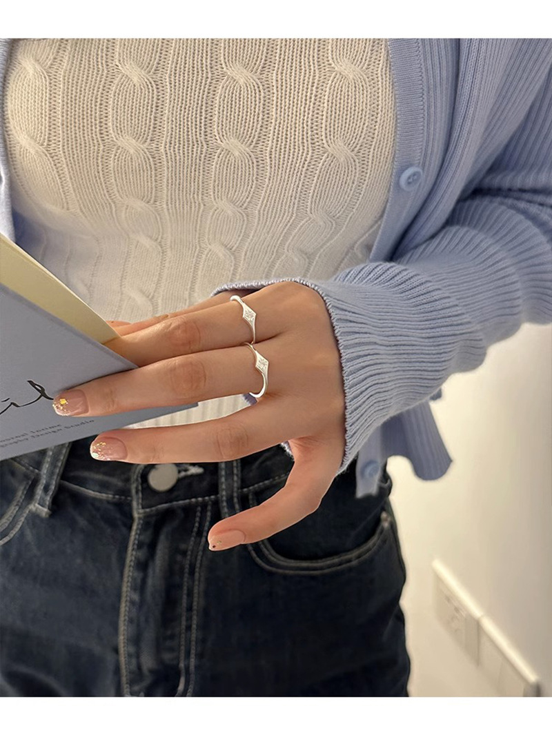 八芒星戒指女简约夏季小星愿星芒指环锆石星星食指戒开口可调节