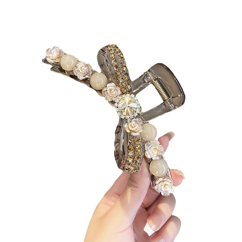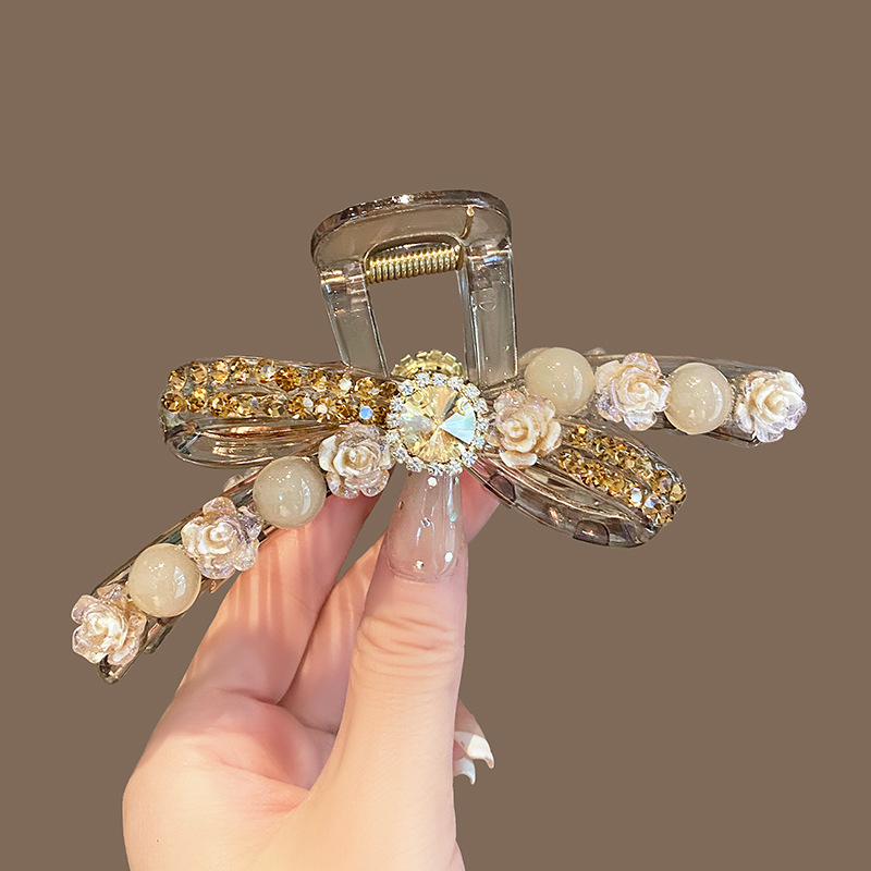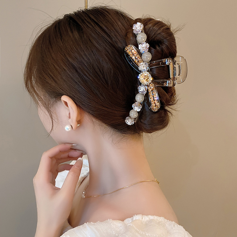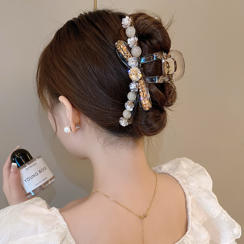 轻奢精致闪钻圆珠抓夹大号发饰女新款高级感盘发鲨鱼夹发夹