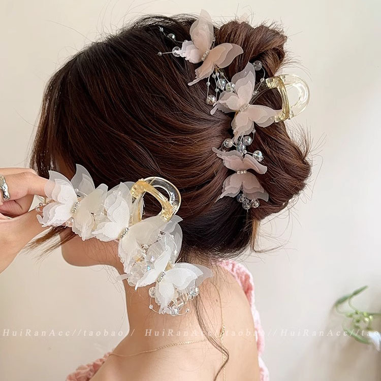 蝴蝶抓夹女大号新款高级感甜美发夹后脑勺盘发夹子头饰鲨鱼夹