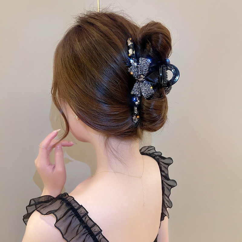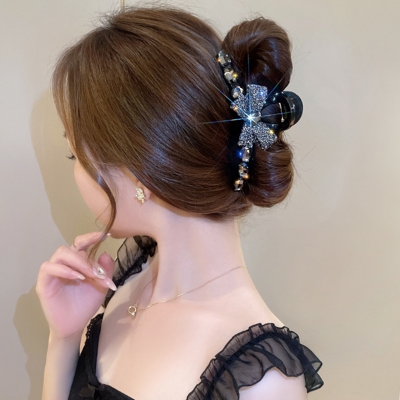 秋季新款满钻蝴蝶结大号抓夹高级感盘发发夹女后脑勺气质夹子头饰