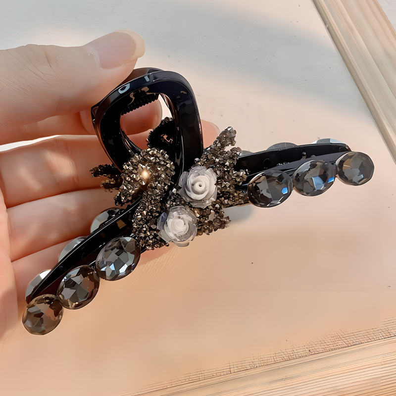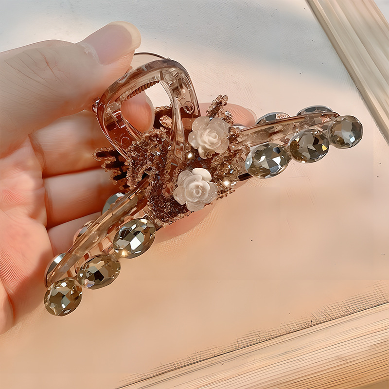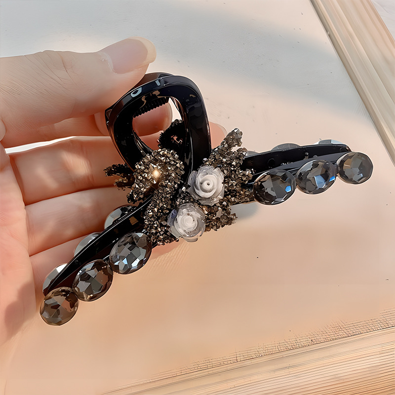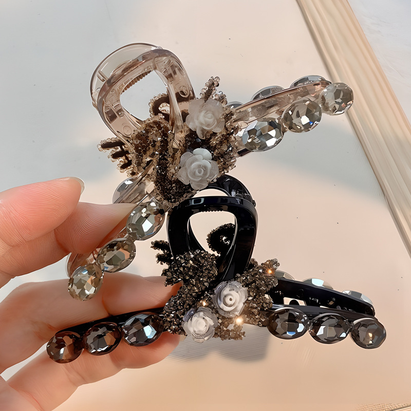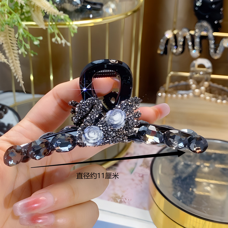闪钻天鹅山茶花抓夹女后脑勺盘发抓大号鲨鱼夹年新款发夹头饰