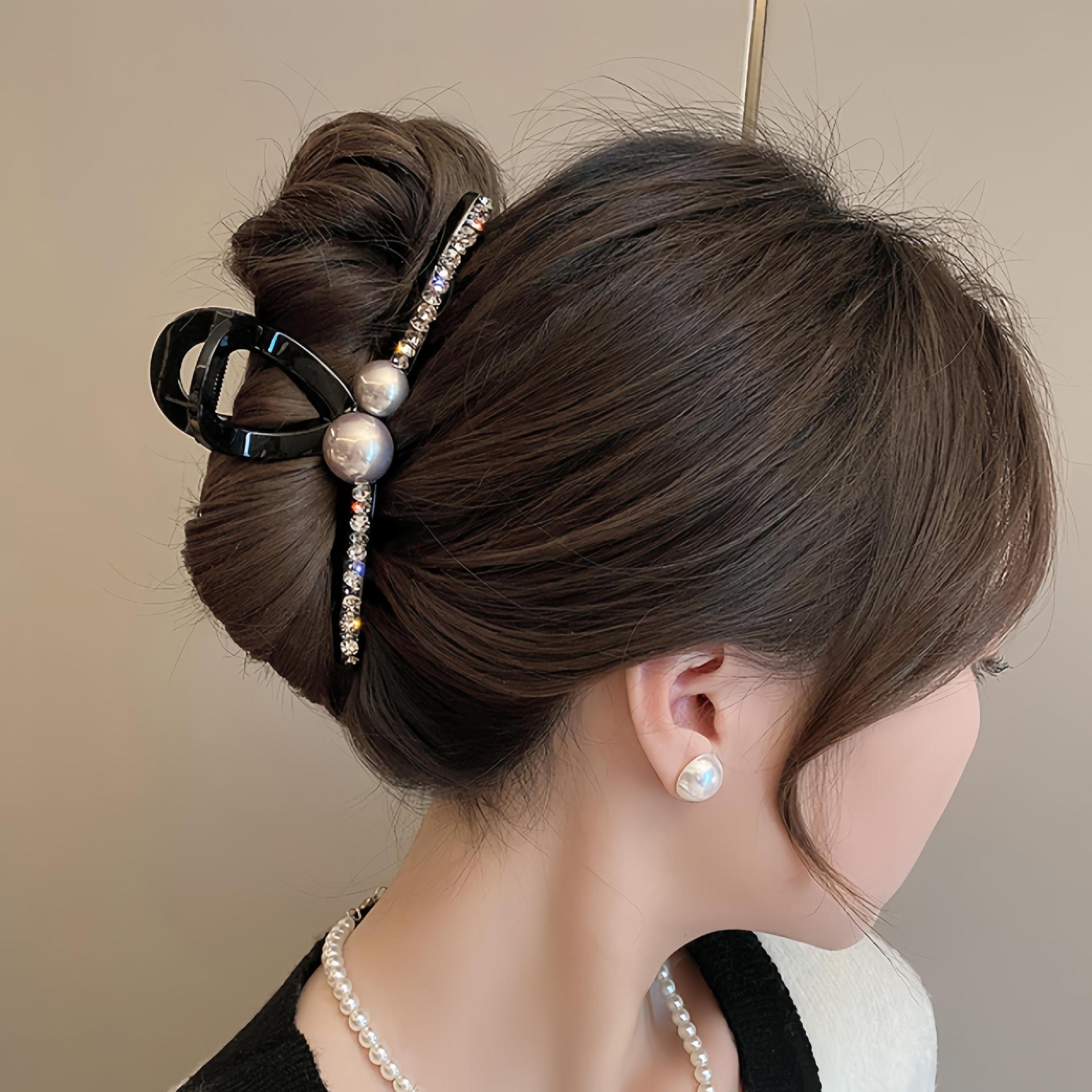 气质珍珠发夹女后脑勺鲨鱼夹新款大号夹子头饰发抓高级感抓夹