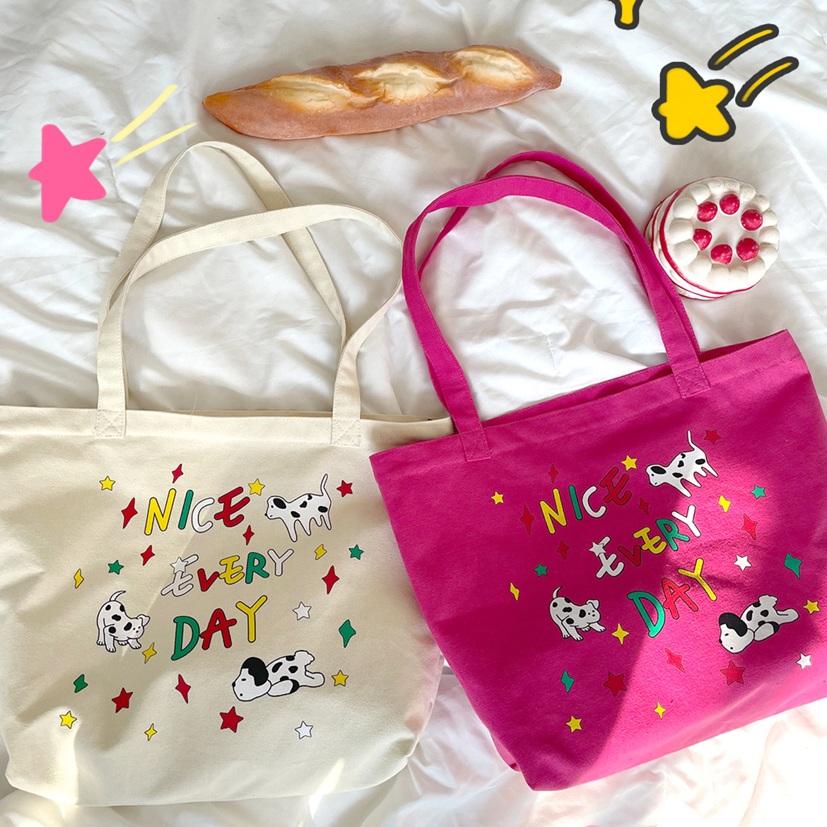 新款学生书包可爱插画帆布袋大容量单肩包拉链帆布包托特包女