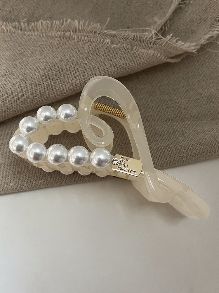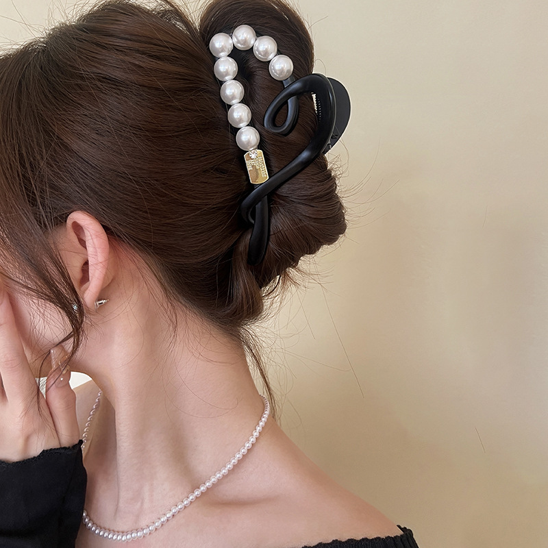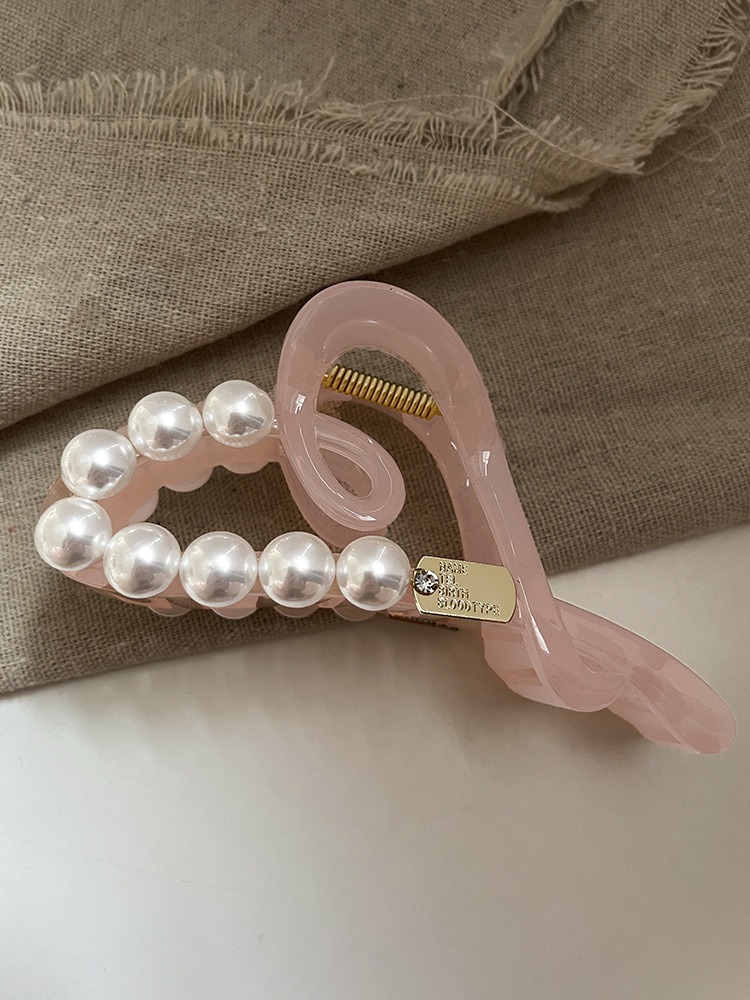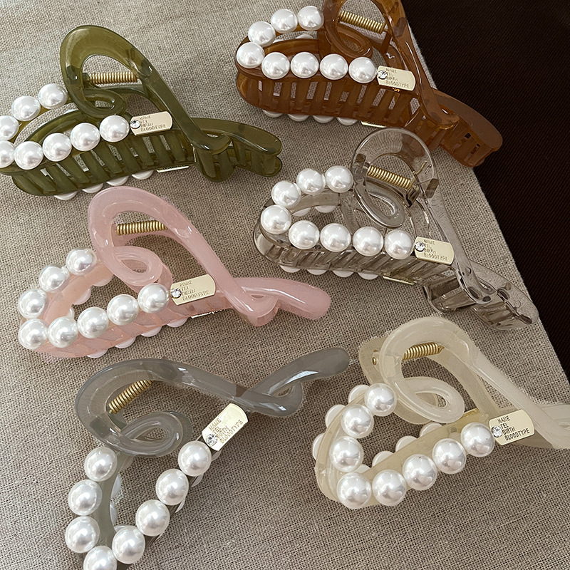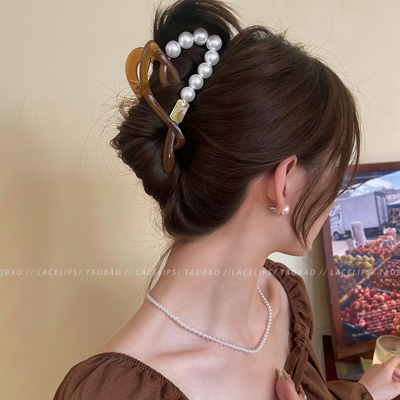 爱心珍珠抓夹新款发夹女韩国时尚高级感鲨鱼夹后脑勺盘发头饰