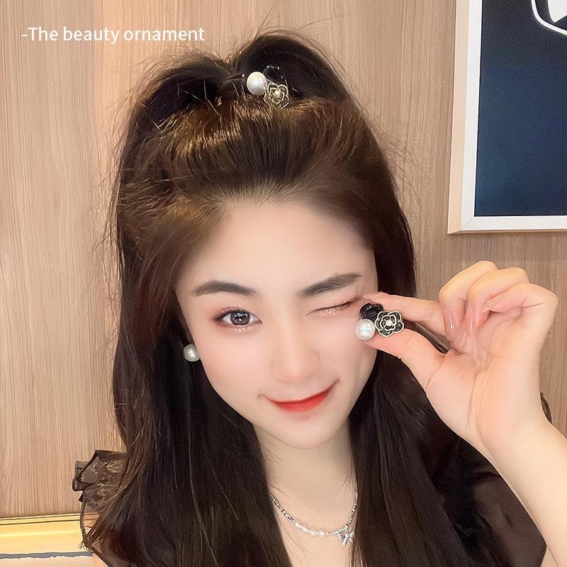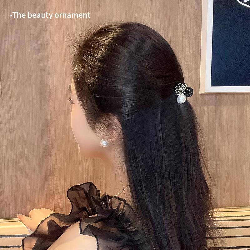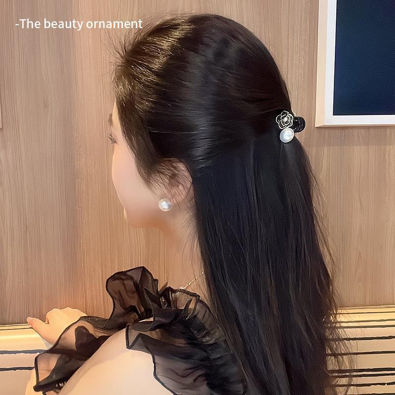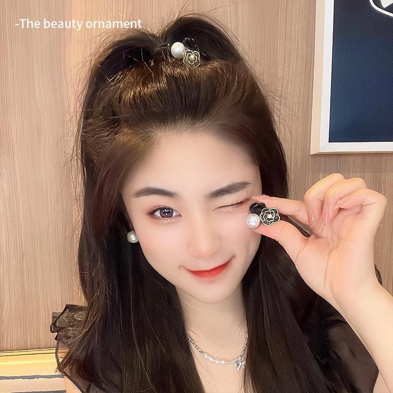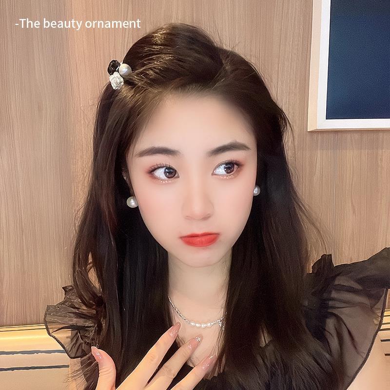 简约山茶花珍珠小抓夹侧边发夹后脑勺高级感碎发刘海夹子发卡头饰