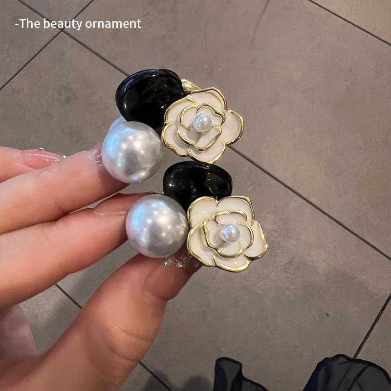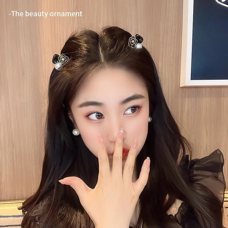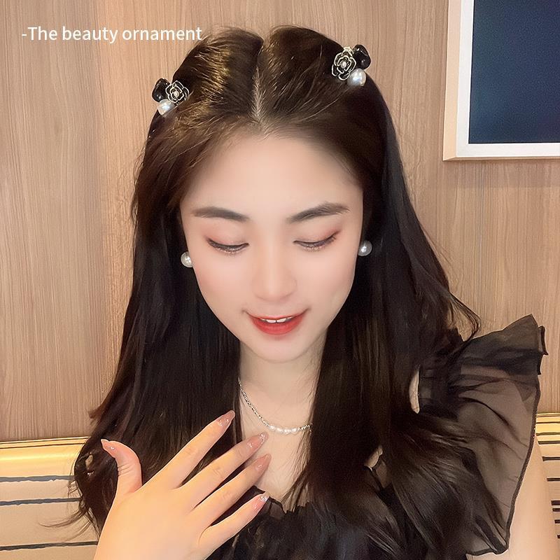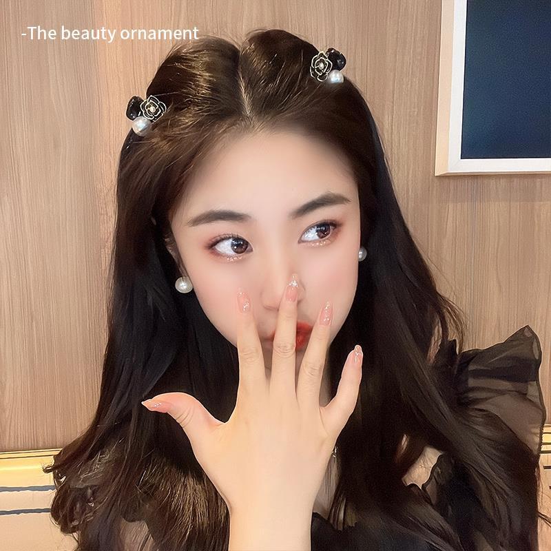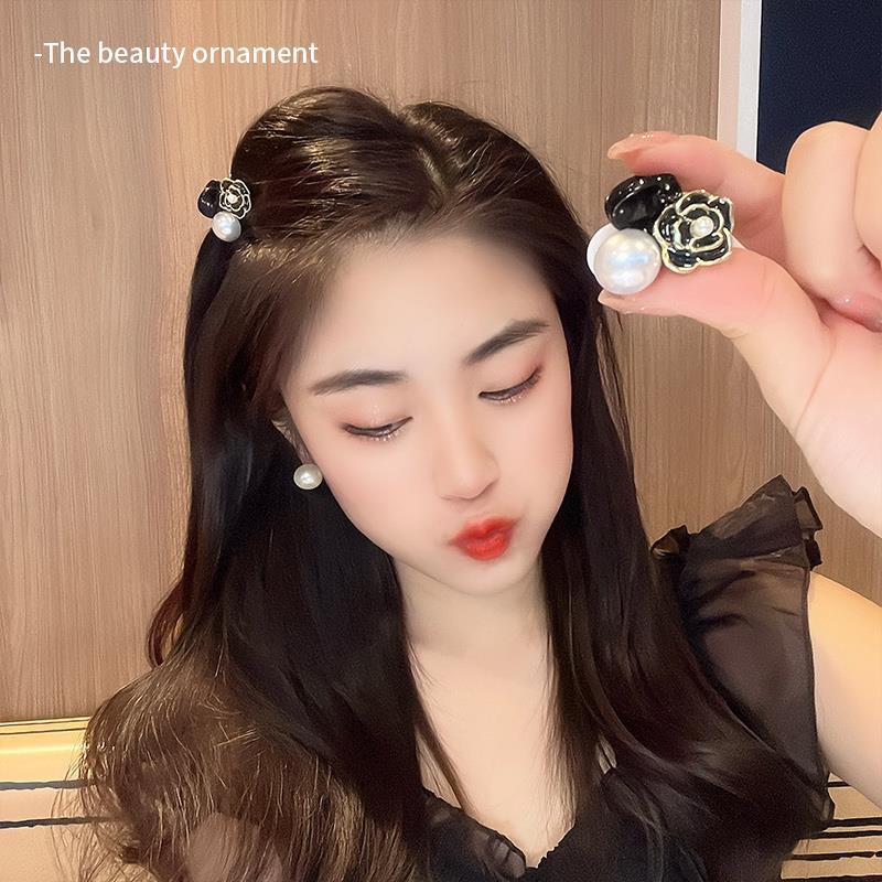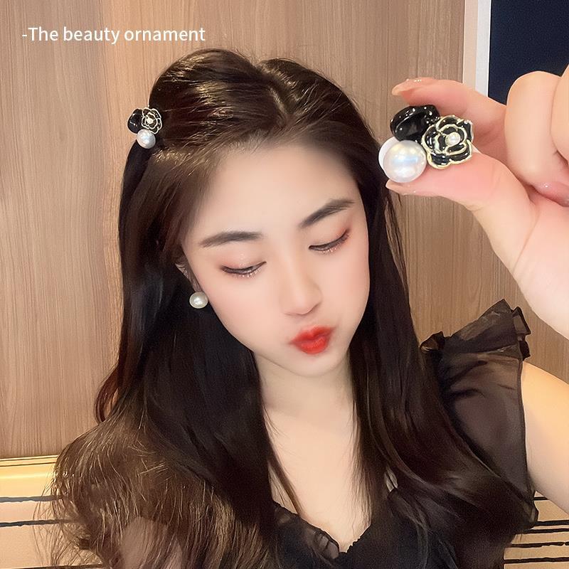 简约山茶花珍珠小抓夹侧边发夹后脑勺高级感碎发刘海夹子发卡头饰