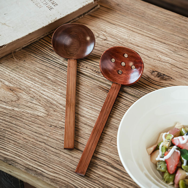 日式复古风汤勺木质勺家用长柄火锅勺漏勺高颜值实用餐具拉面勺子