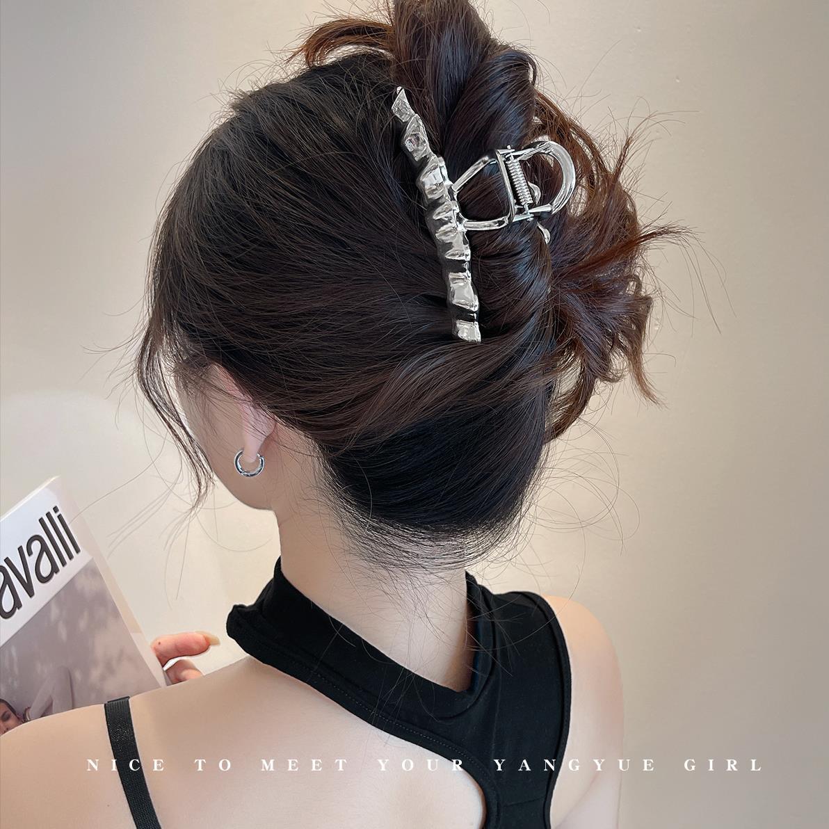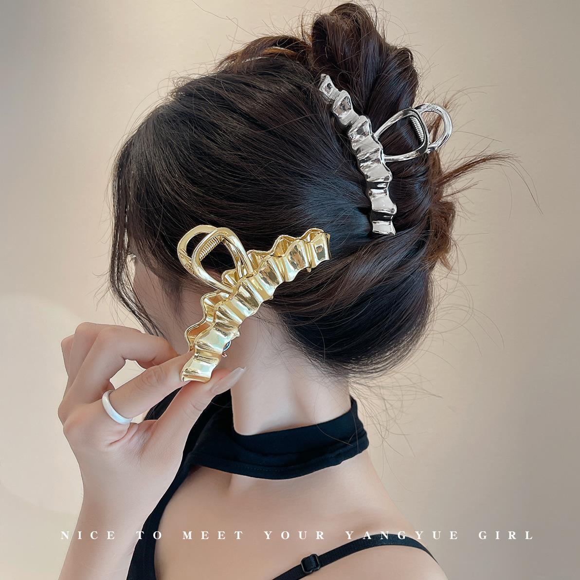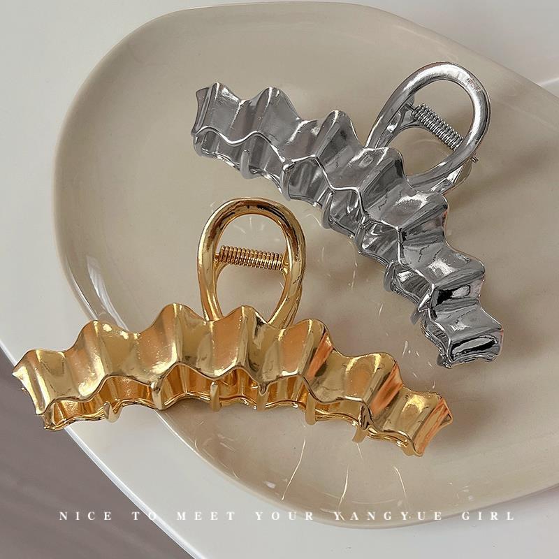 金属抓夹波浪高级感发夹女后脑勺盘发夹鲨鱼夹子发卡新款头饰