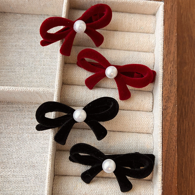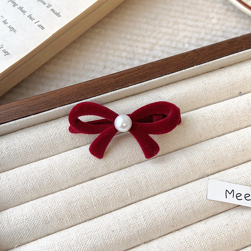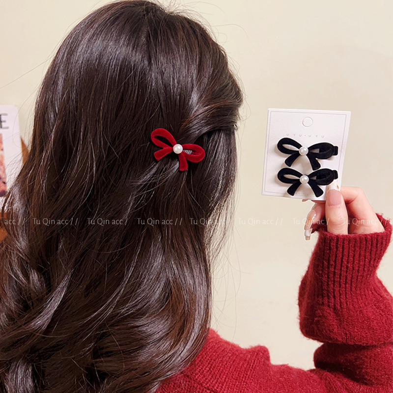 新年红色蝴蝶结发夹女新款头饰可爱小号前额侧边刘海夹子