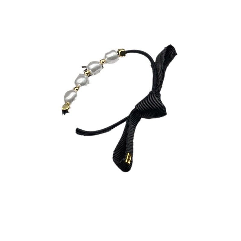 复古小香风黑色气质打结发圈新款高级感丸子头珍珠头绳女