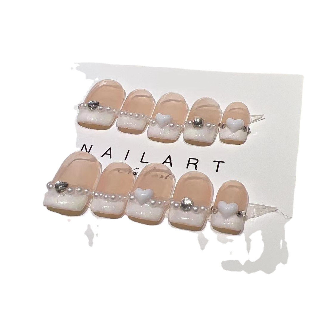 穿戴甲纯手工光疗美甲爱心泡芙穿戴甲可拆卸小红书抖音爆款假指甲