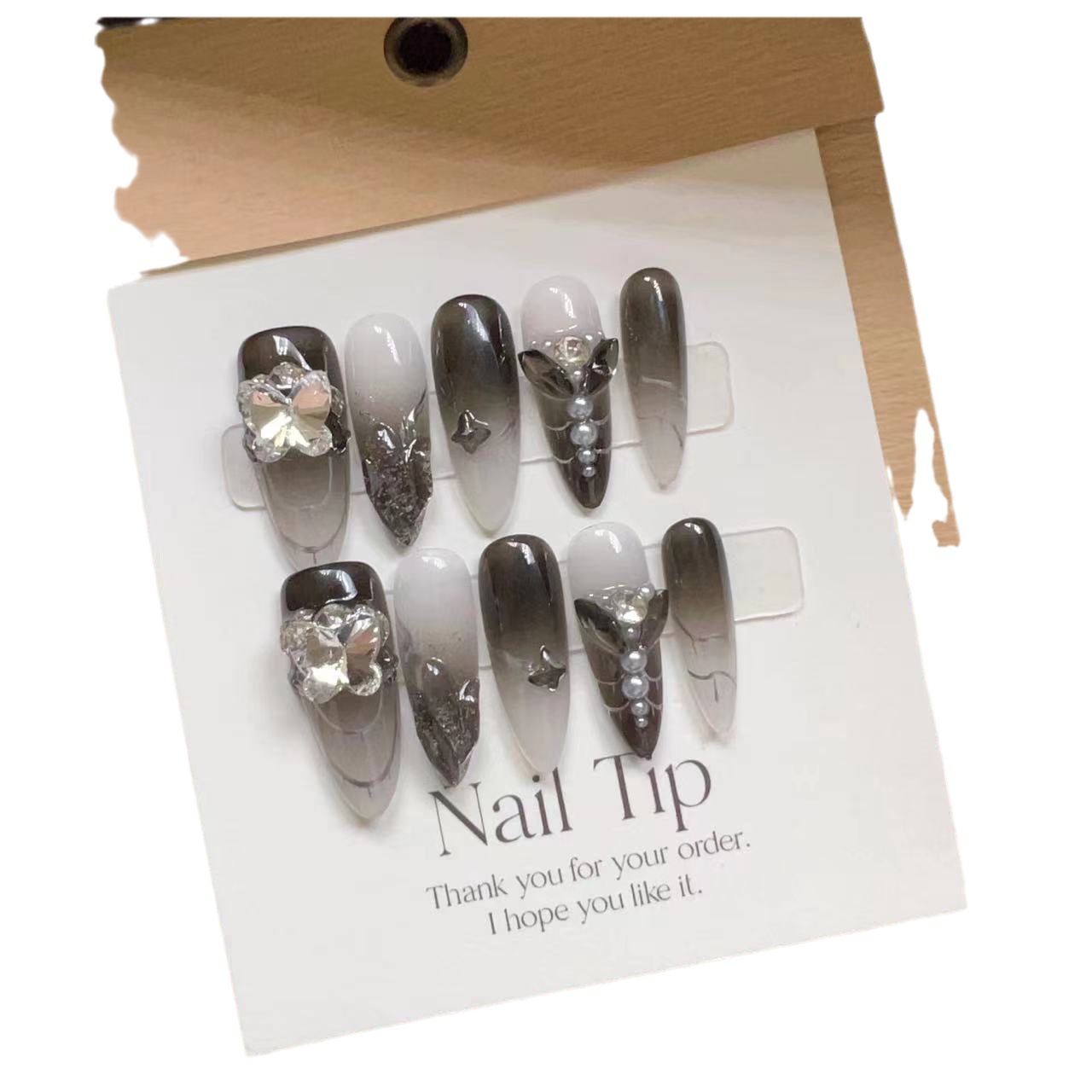 纯手工美甲穿戴甲假指甲贴片美甲成品个性黑色渐变爆闪蝴蝶钻