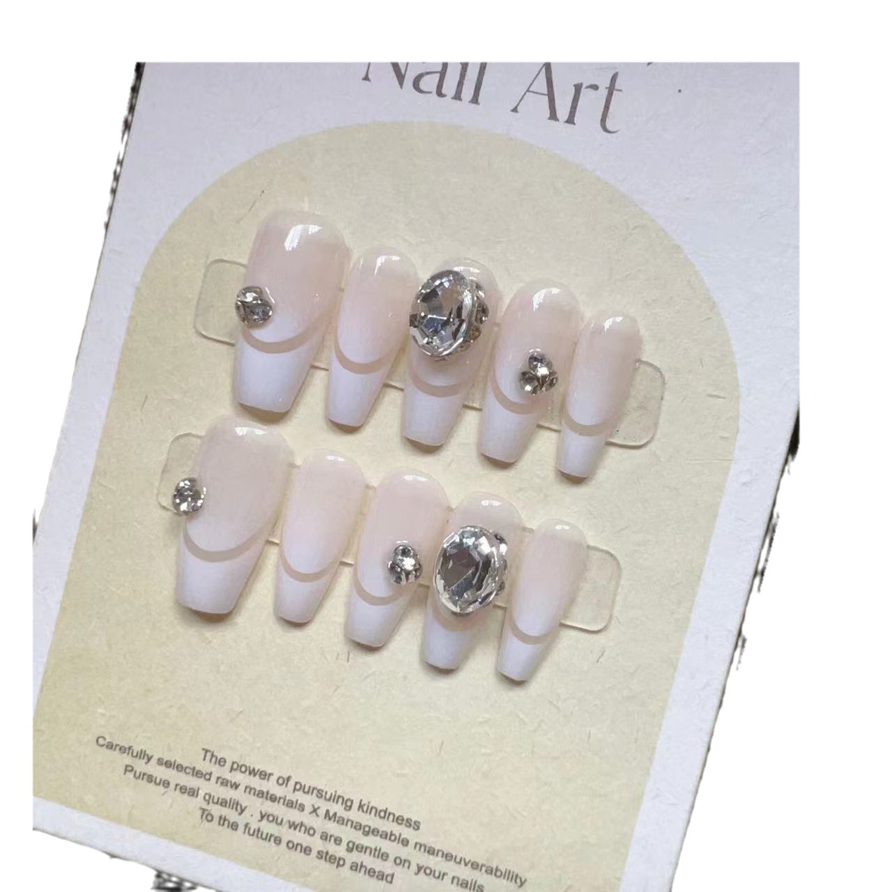 纯手工美甲穿戴甲假指甲贴片爆闪钻白色法式渐变浪漫满屋美甲成品