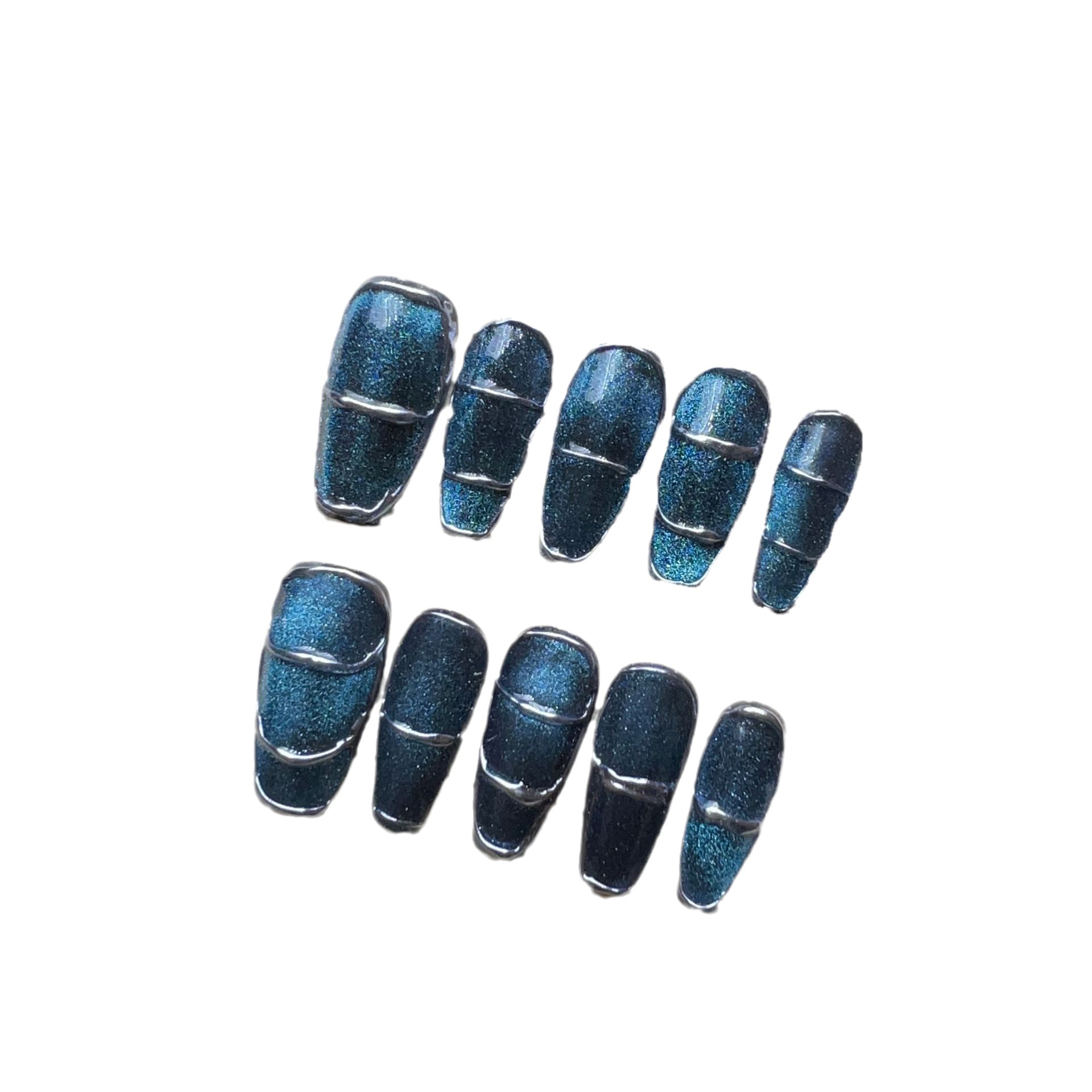 黛瑞森纯手工美甲穿戴甲假指甲贴片高级墨尔本星空蓝色猫眼渐变