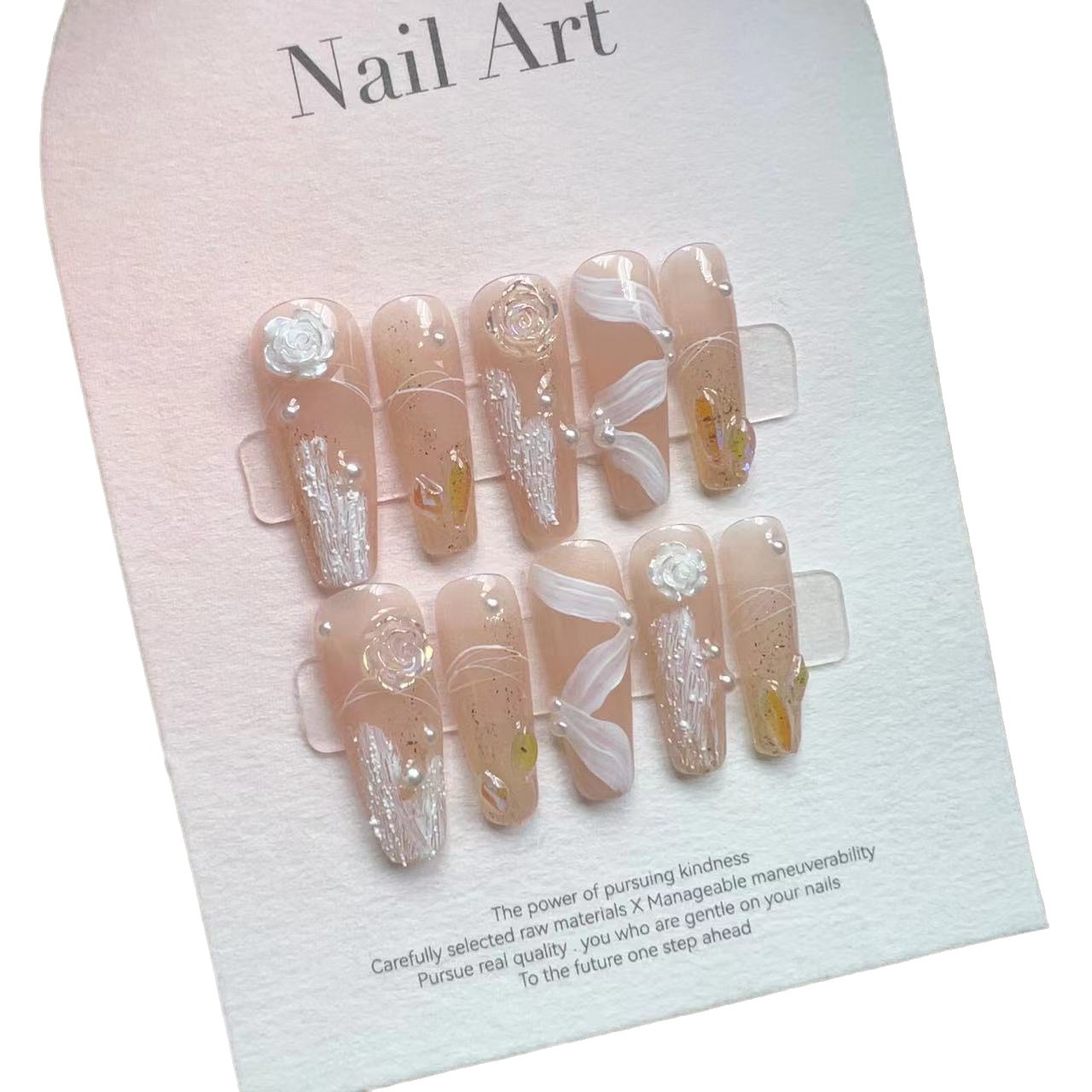 【外贸款】手工美甲穿戴甲假指甲贴片美甲成品裸色石膏飘带山茶花