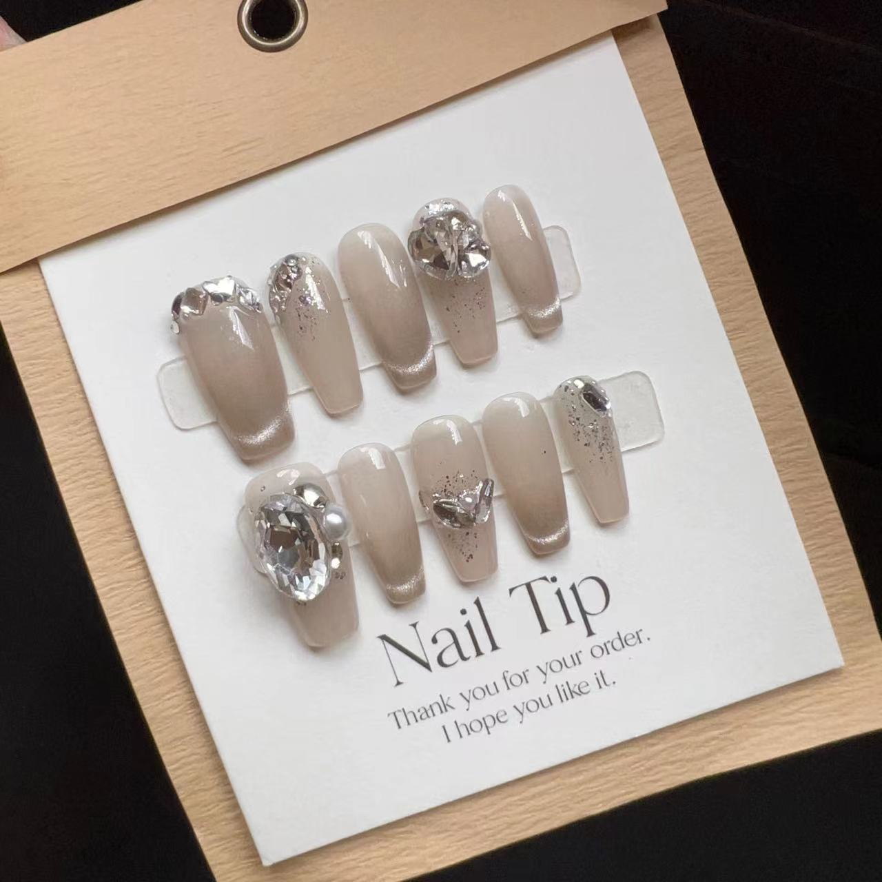 纯手工美甲穿戴甲假指甲贴片秋冬新款爆闪钻猫眼法式渐变美甲成品