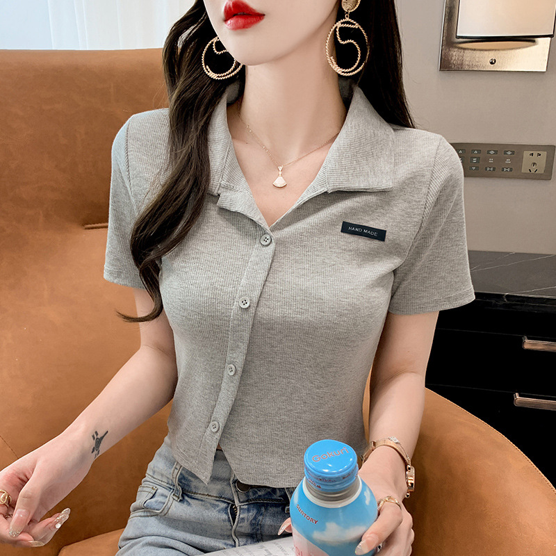 被惊艳到了!深灰色短袖t恤女夏季薄款时髦辣妹百搭显瘦上衣