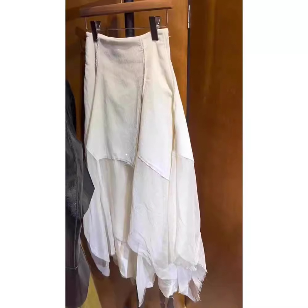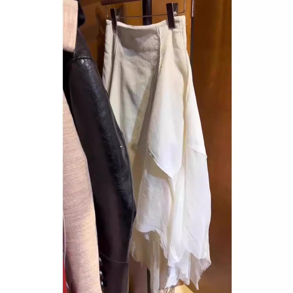 高腰显瘦长裙设计感小众拼接不规则白色半身裙女年早春季新款