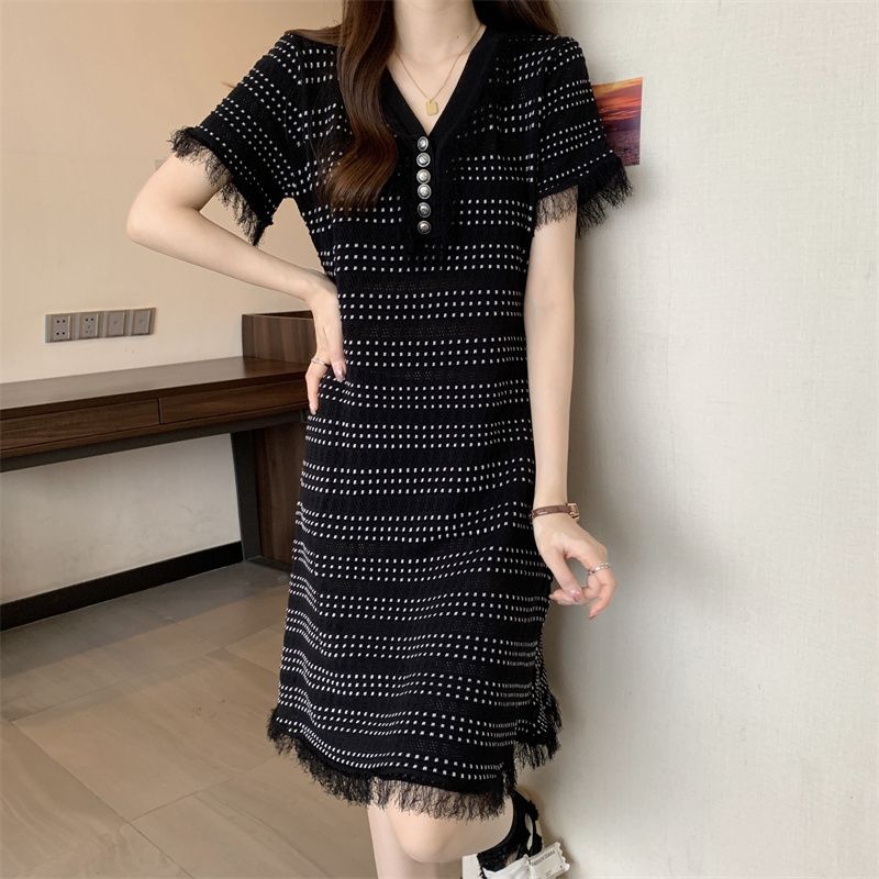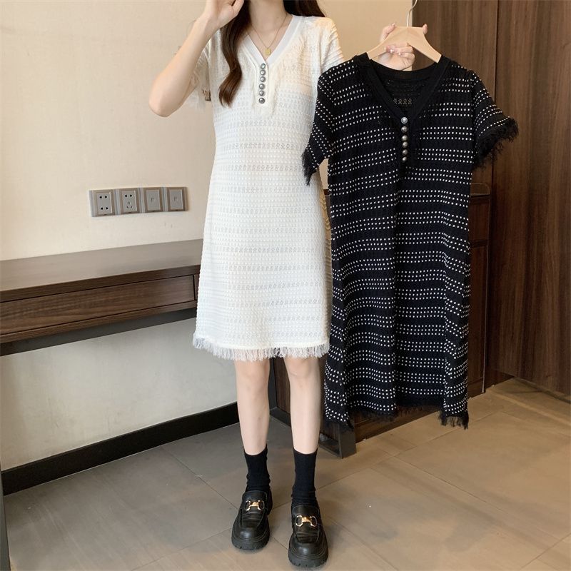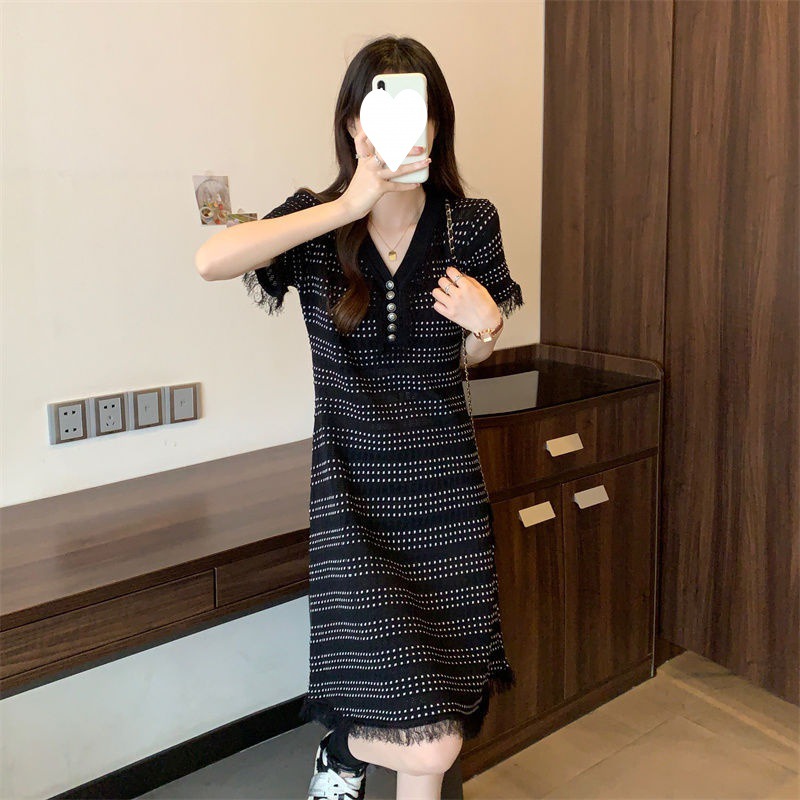 夏季外穿女装新款韩版短袖流苏甜美白色显瘦针织连衣裙冰丝裙