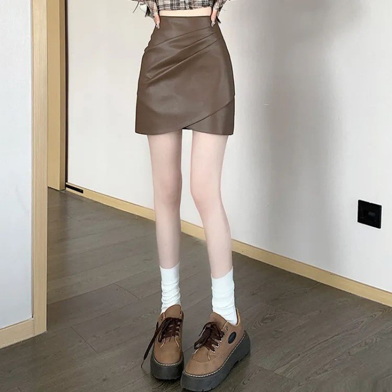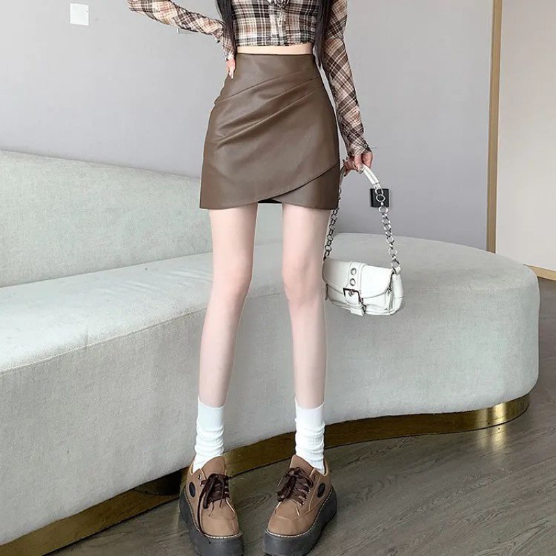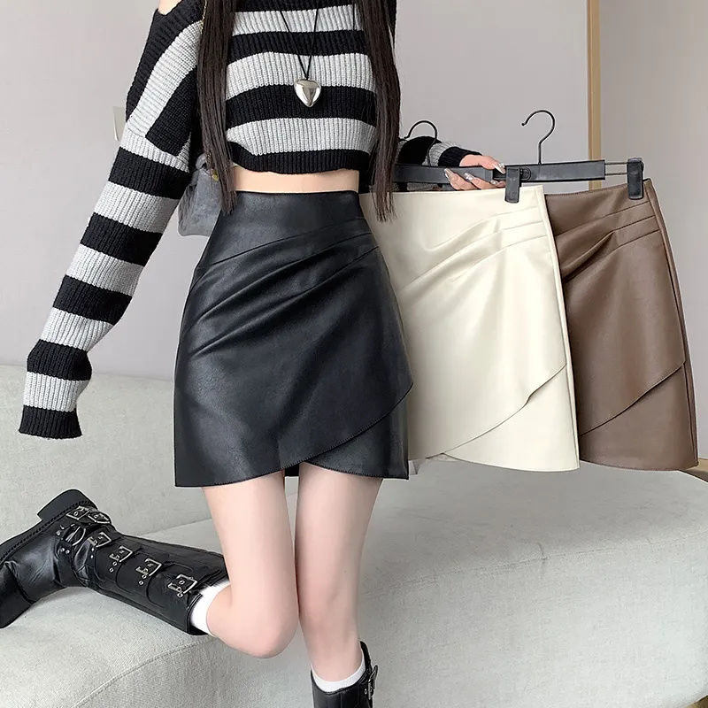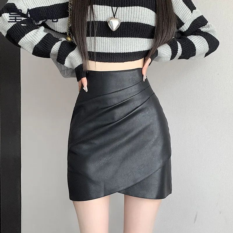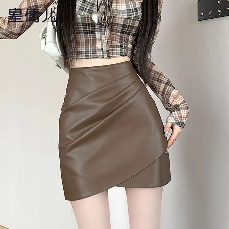 半身裙女春秋季新款不规则PU辣妹风高腰显瘦a字包臀短款皮裙