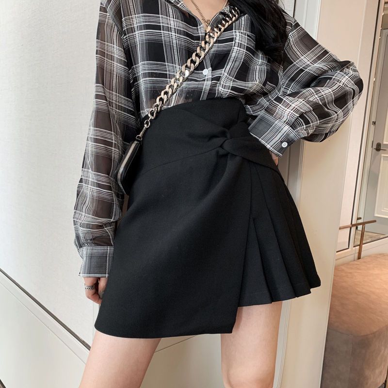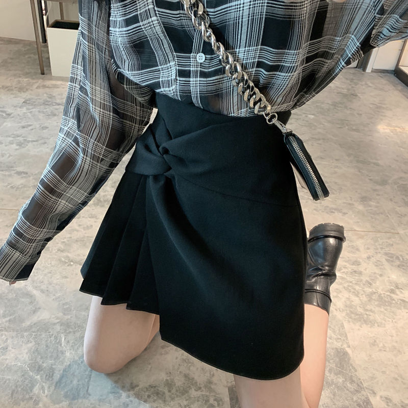 不规则半身裙女春季新款高腰a字裙百褶裙显瘦包臀短裙子ins潮