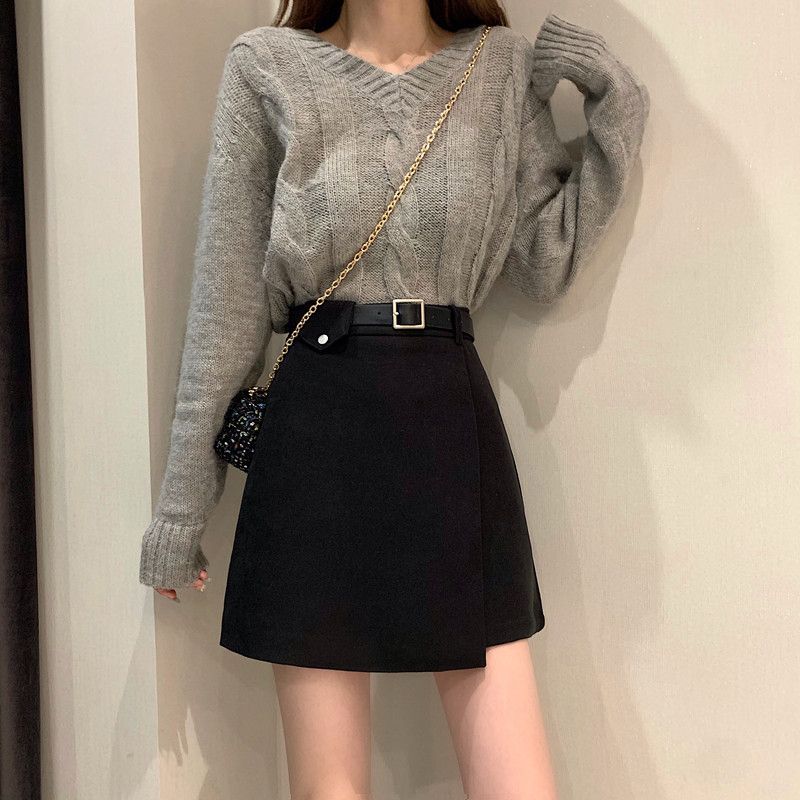 新款短款显瘦a字裙半身裙学生短裙ins包臀黑色裙子女潮